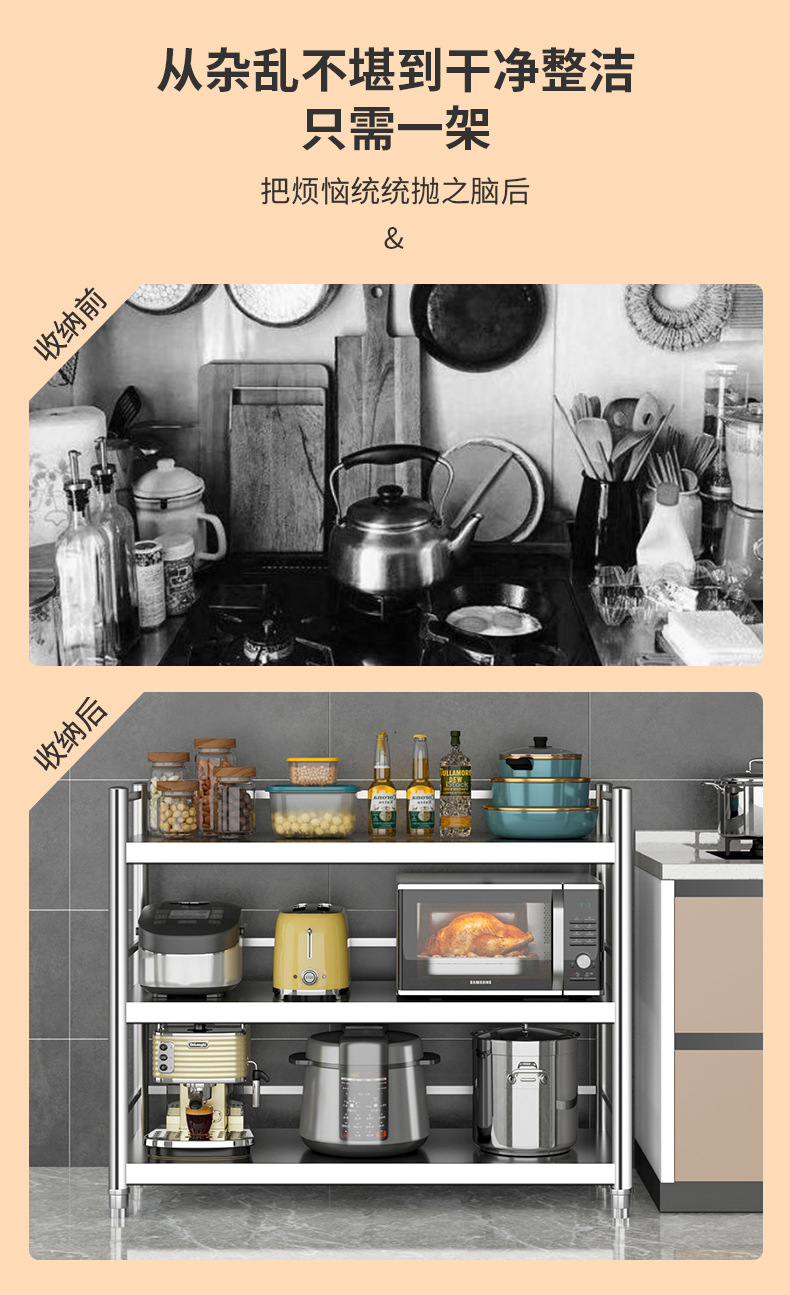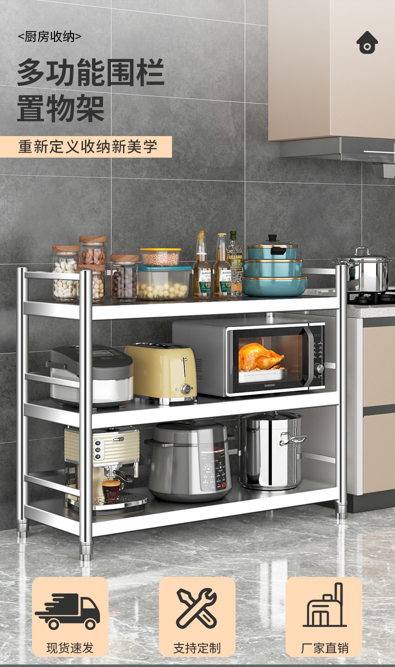 Kitchen stainless steel storage rack microwave oven rack oven rack pot rack storage floor multi-layer shelf fence shelf