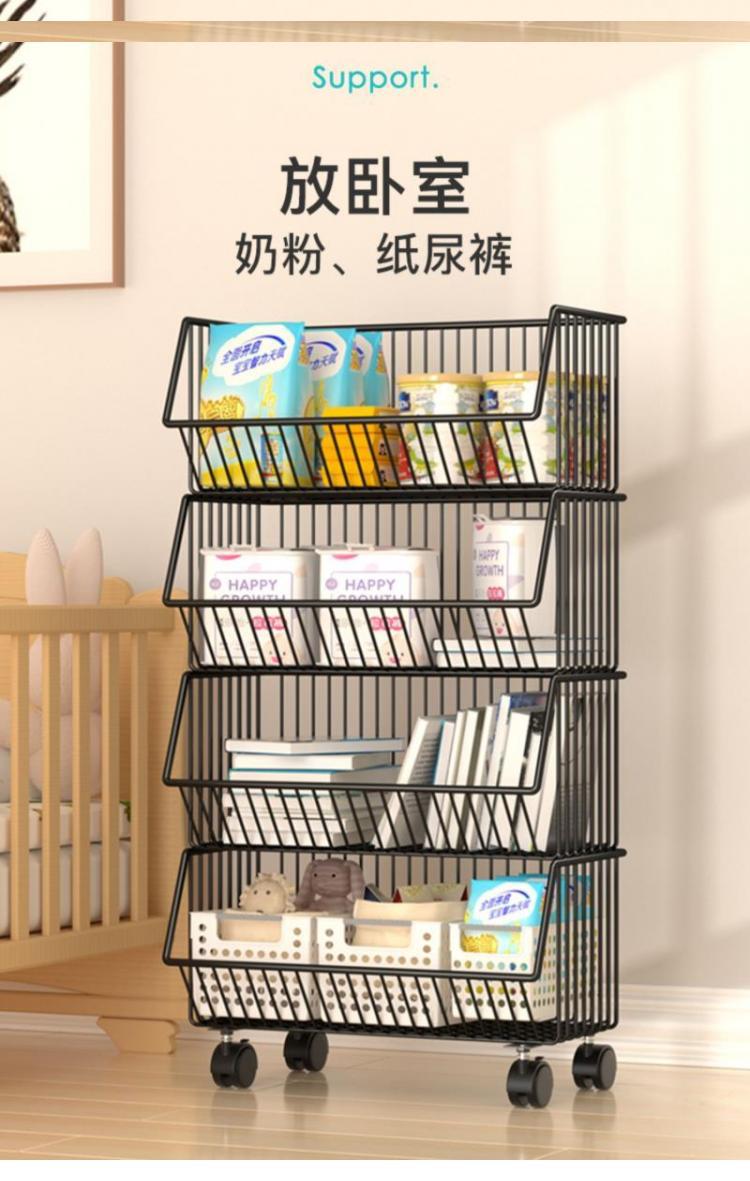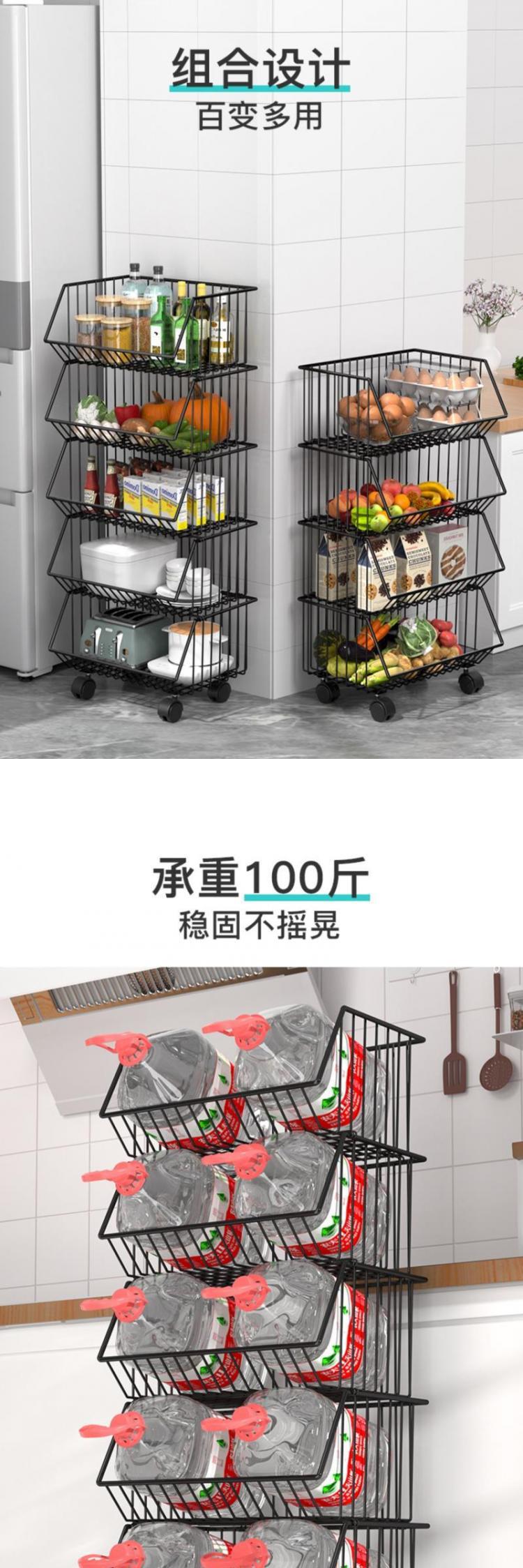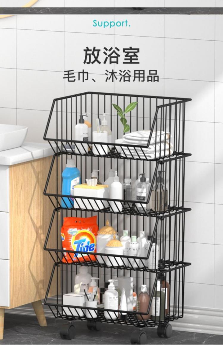 Kitchen storage rack floor multi-layer household movable trolley vegetable basket toy storage storage bathroom shelf