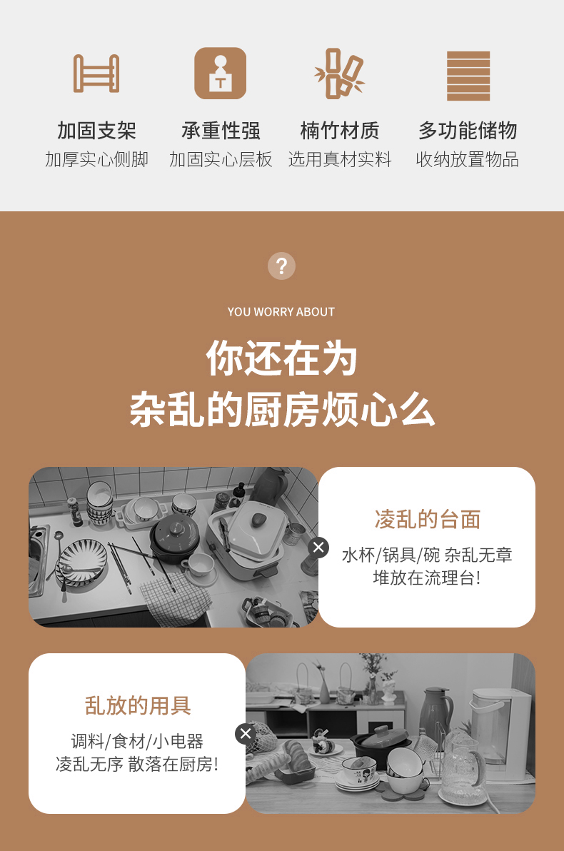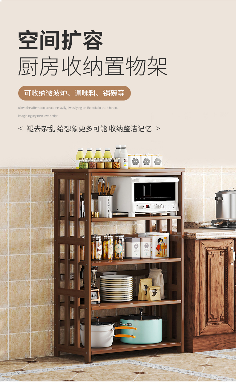 Kitchen storage rack microwave oven rack multi-layer floor solid wood bamboo storage rack locker multi-functional balcony organizing rack