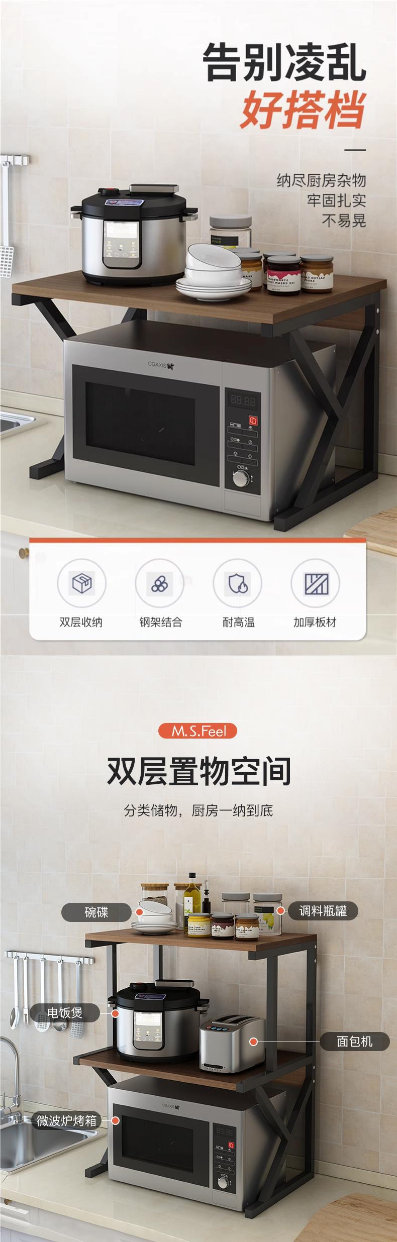 Kitchen storage rack table storage rack double-layer oven microwave oven shelf desktop storage rack supplies household Complete Collection
