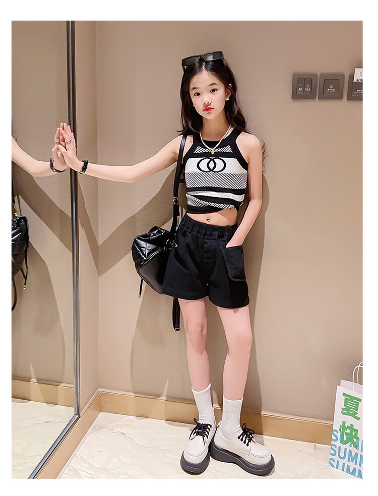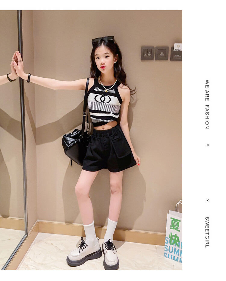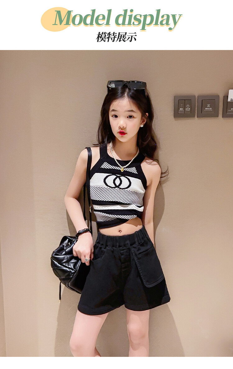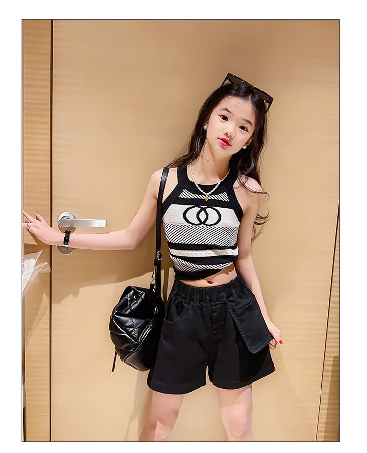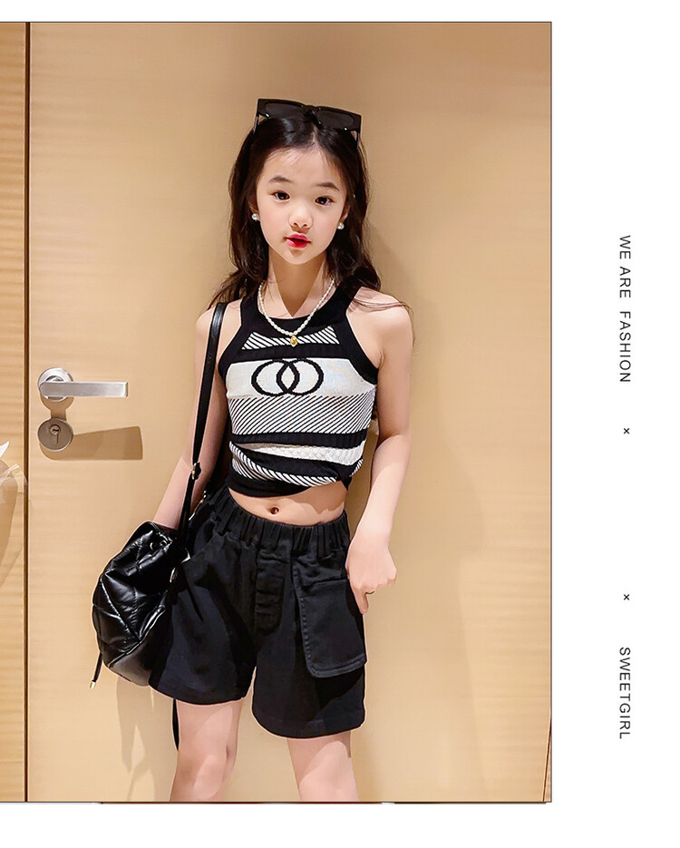 Korean Children s Wear Summer 2023 New Girls Korean Knitted Sweater Camisole Outer Wear Sports Middle and Big Children s Fashion