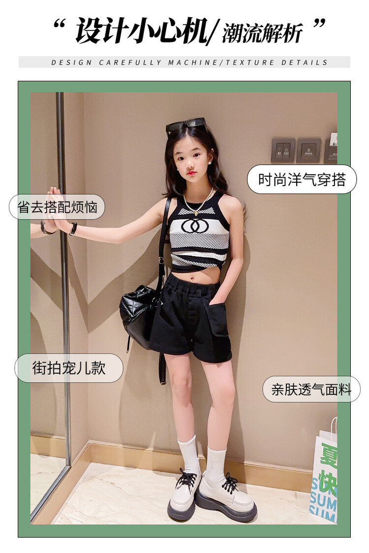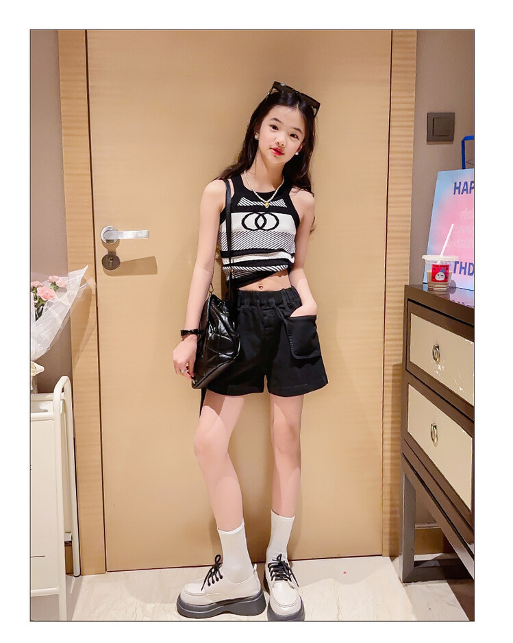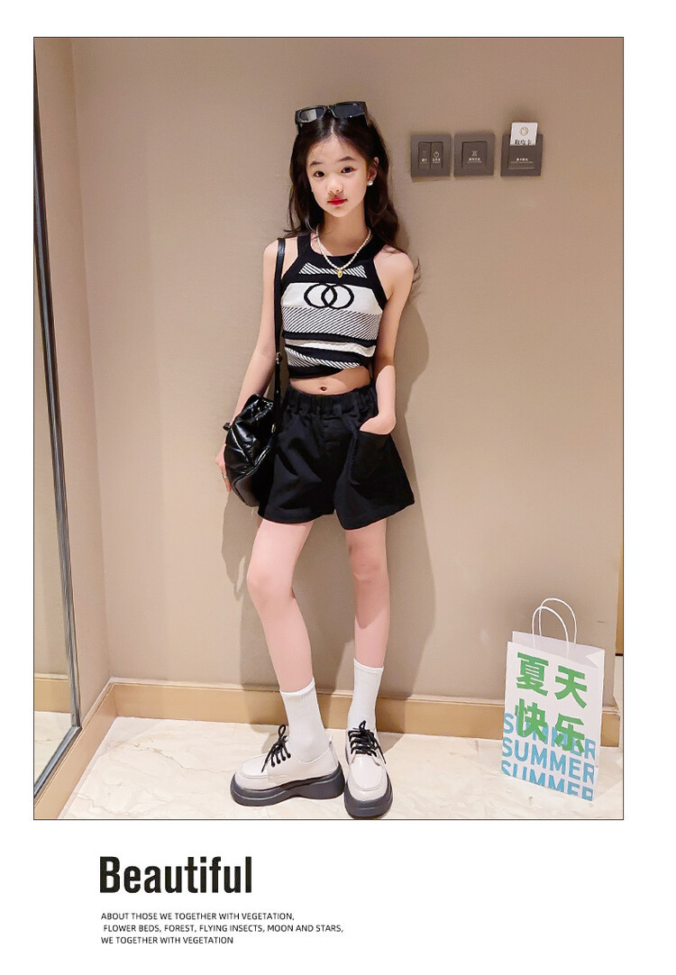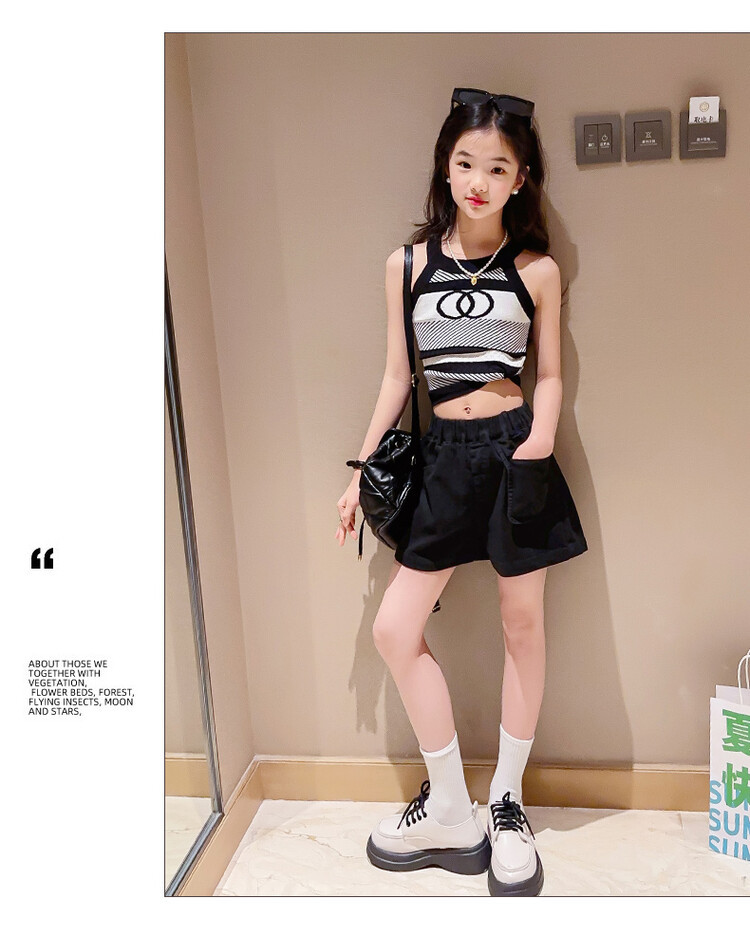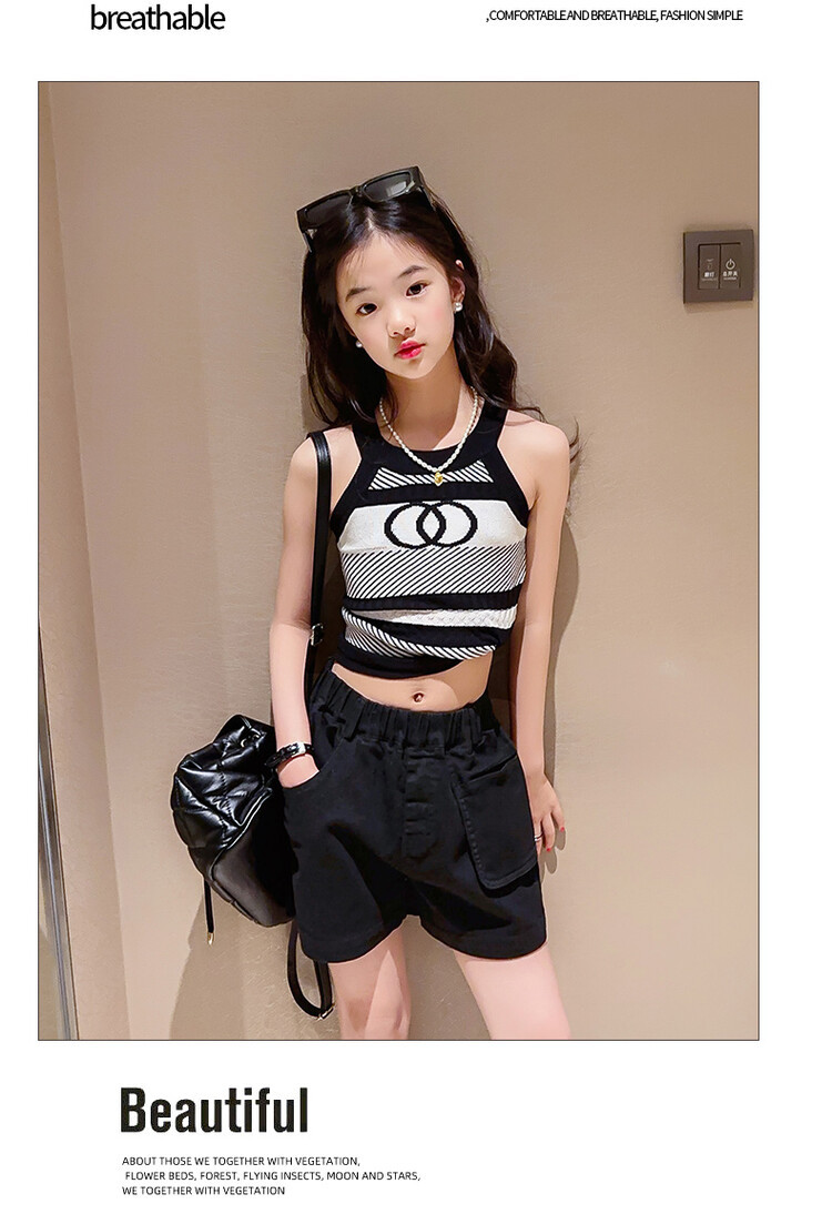 Korean Children s Wear Summer 2023 New Girls Korean Knitted Sweater Camisole Outer Wear Sports Middle and Big Children s Fashion