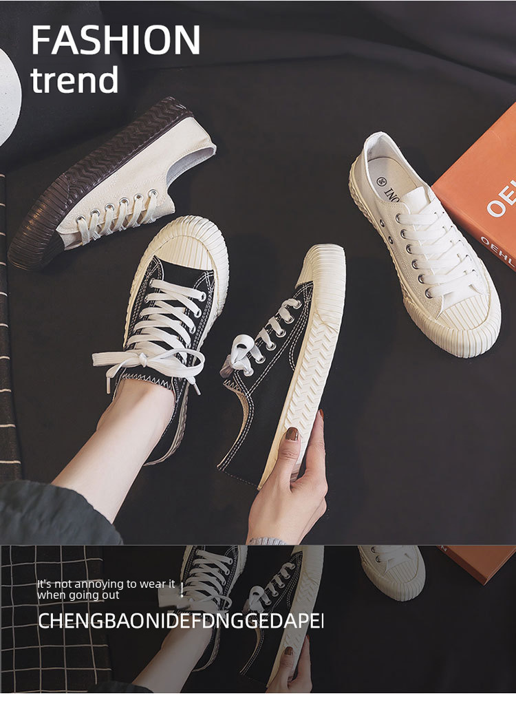 Korean Style Canvas Shoes Women s Caramel Biscuits Student All match Harajuku Style Retro Sneakers with Hong Kong Style 1970