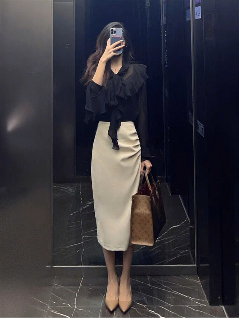Korean drama socialite Chanel style shirt temperament skirt 2024 spring new western style professional commuter suit