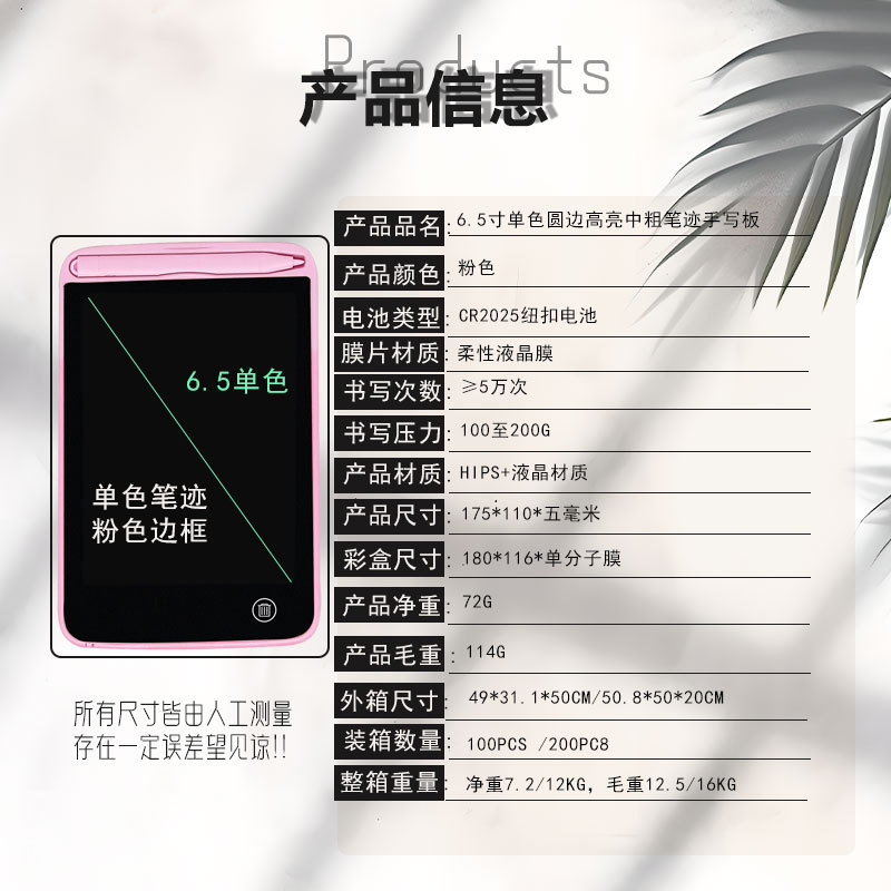 - 6.5-inch round edge monochrome handwriting: Pink