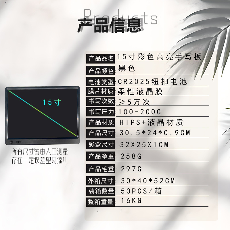 - 15 inch high-end color handwriting: black