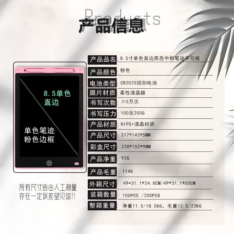 - 8.5-inch round edge color handwriting: Pink