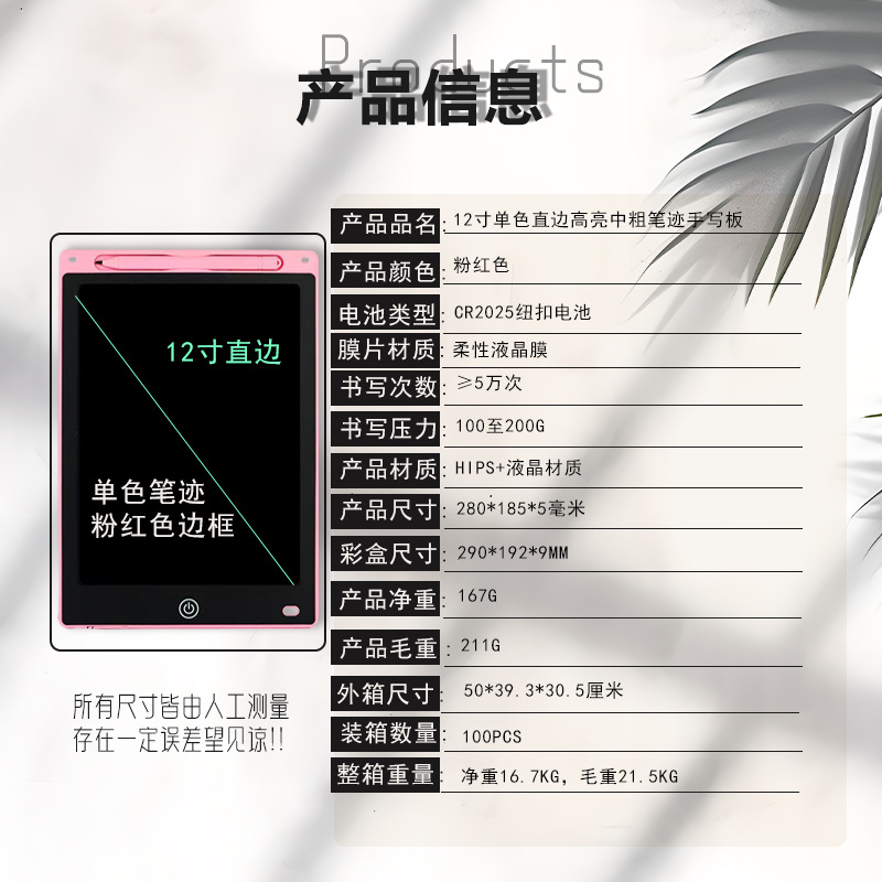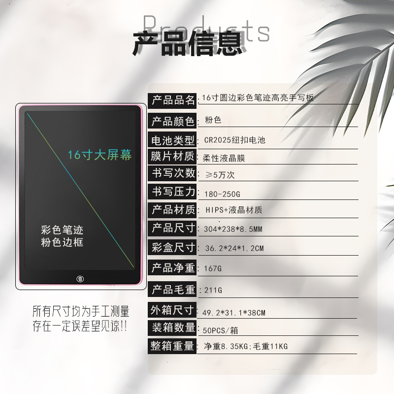 - 16-inch vertical screen straight edge color handwriting: Pink