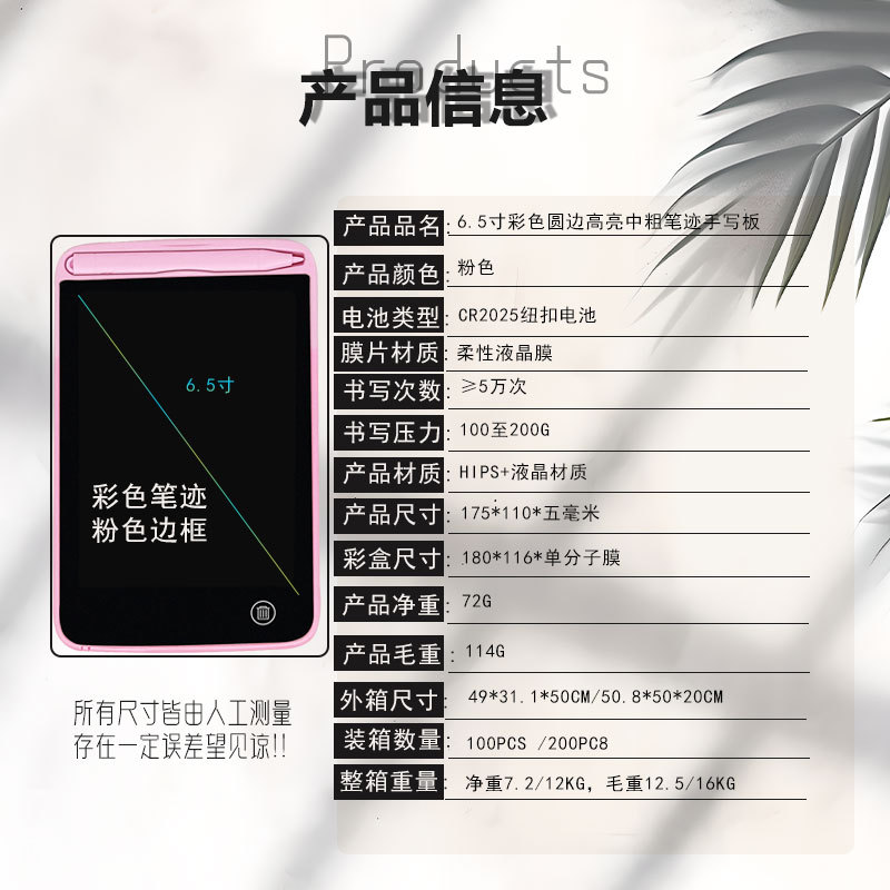 - 6.5-inch round edge color handwriting: Pink