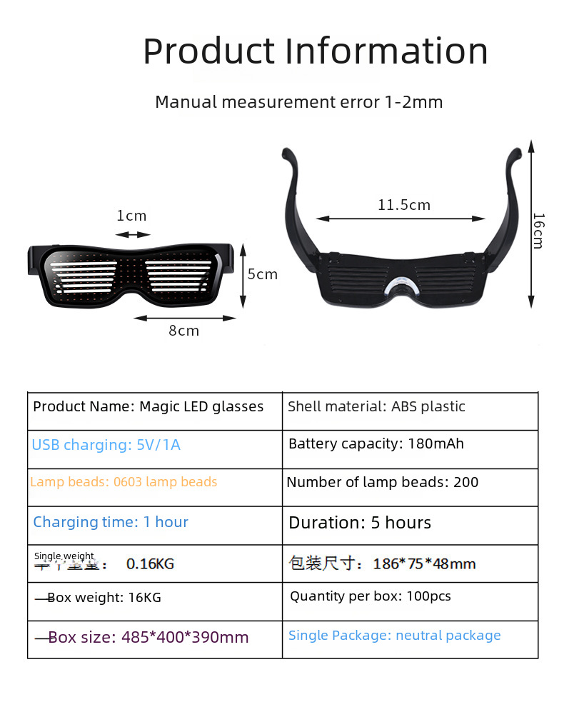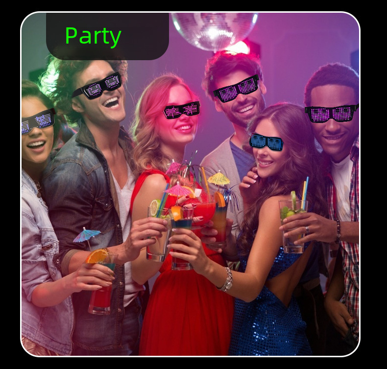 LED Bluetooth light emitting glasses APP mobile phone connection control dynamic light emitting multi language Bar nightclub electric sound props