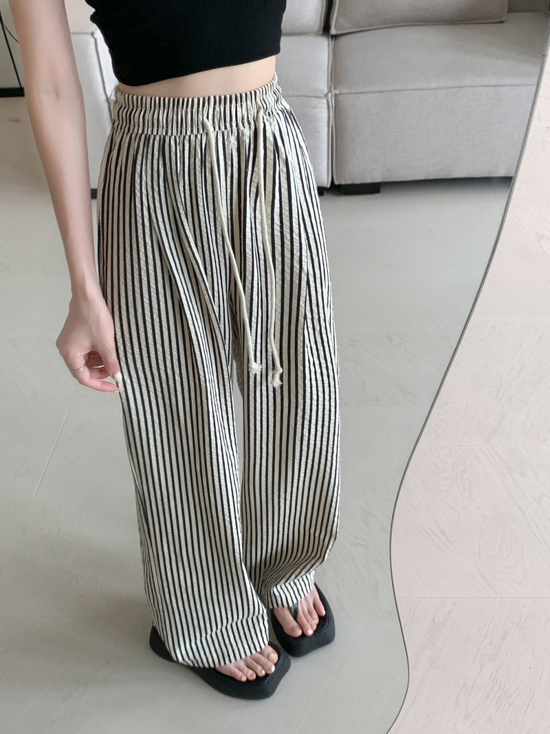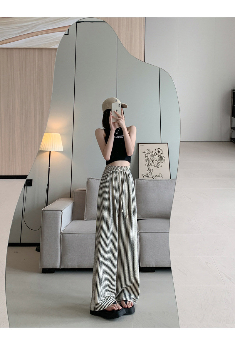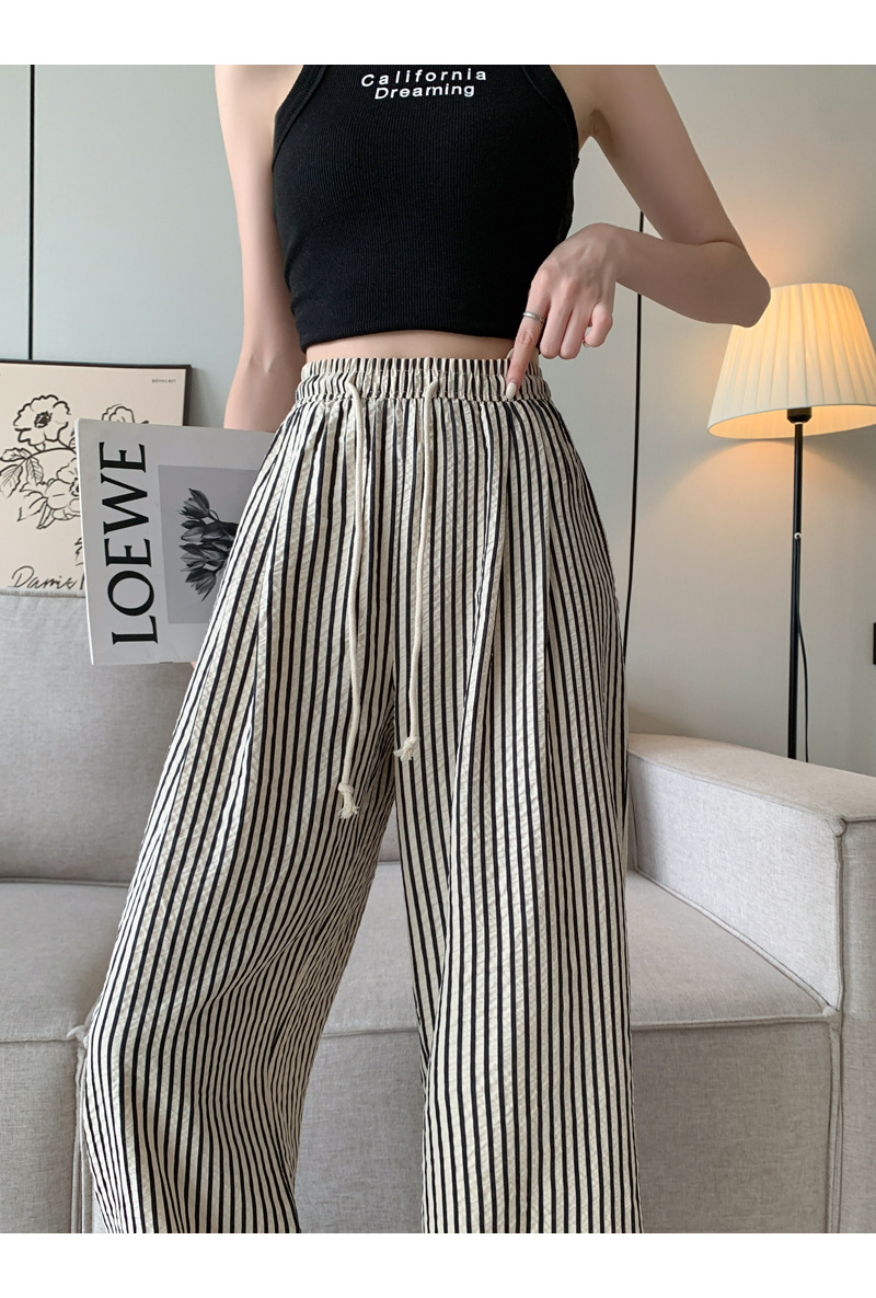 Lazy Style Summer Thin Loose All match Black and White Vertical Stripe Drawstring Pants Women s Casual Straight Pants