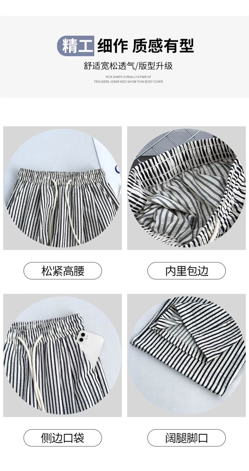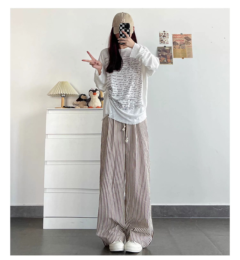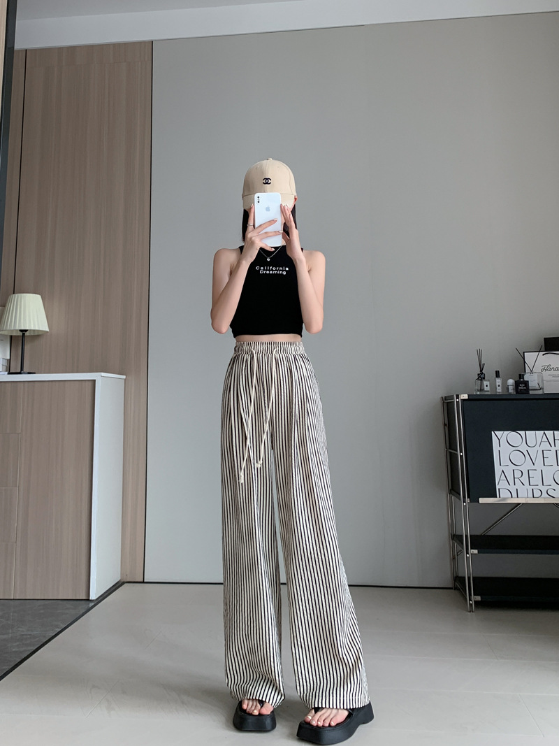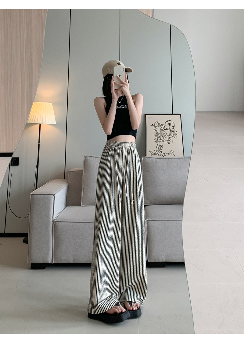 Lazy Style Summer Thin Loose All match Black and White Vertical Stripe Drawstring Pants Women s Casual Straight Pants