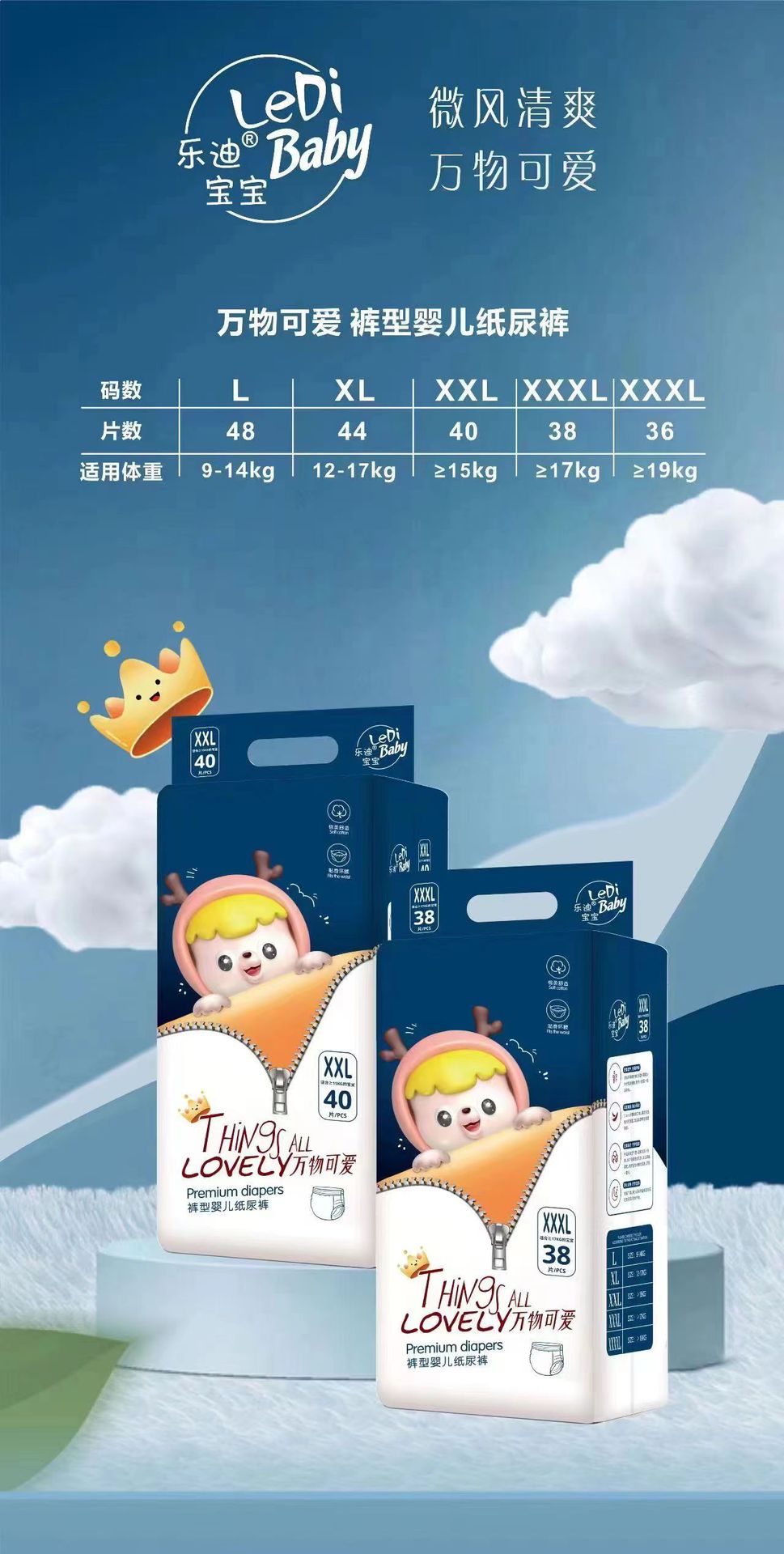 Ledi baby diapers ultra thin breathable diaper close fitting ring waist pull up pants baby diaper affordable