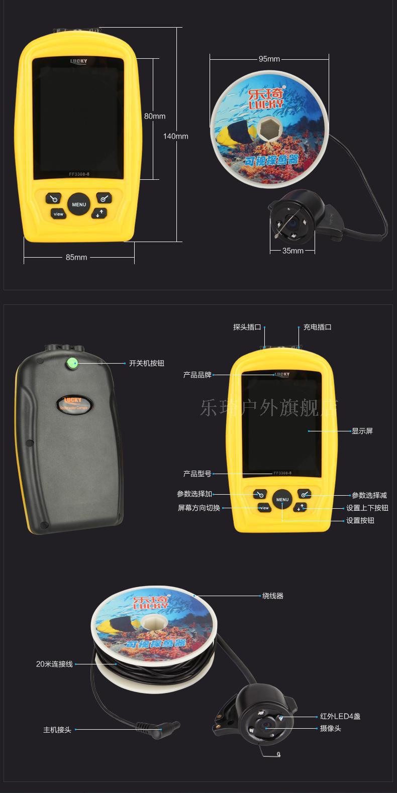 Leqi sonar fish finder underwater HD camera FF3308 8 shore fishing boat fishing detector 20 m line Outdoor