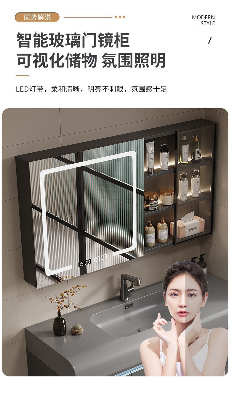 - 80 skin feeling integrated basin upgrade intelligent glass door mirror cabinet