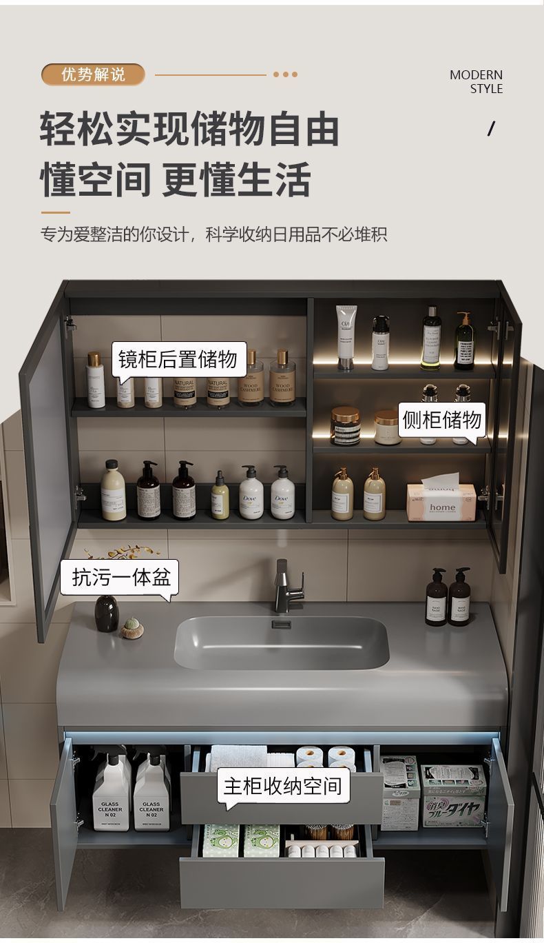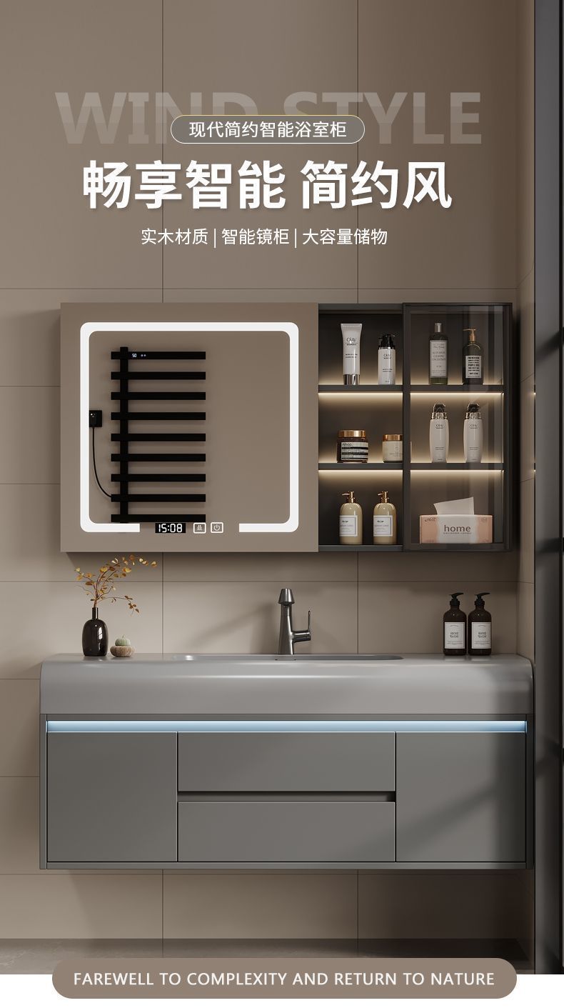 - 80 skin feeling integrated basin intelligent storage mirror cabinet