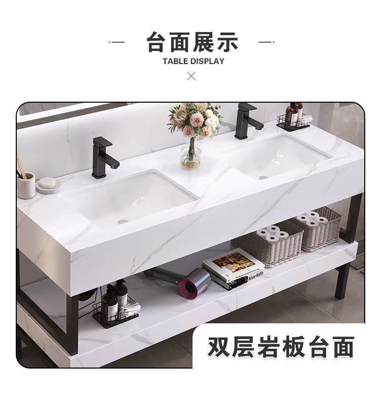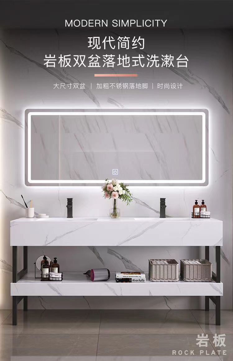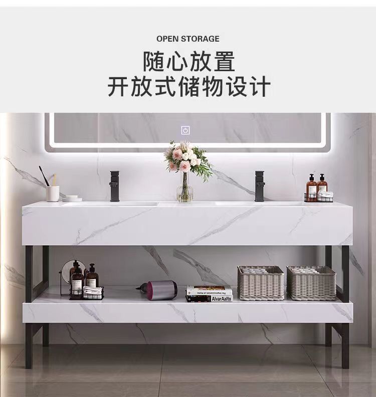 Light Luxury Rock Board Floor Bathroom Cabinet Combination Bathroom Intelligent Wash Table Basin Integrated Simple Double Basin Wash Basin