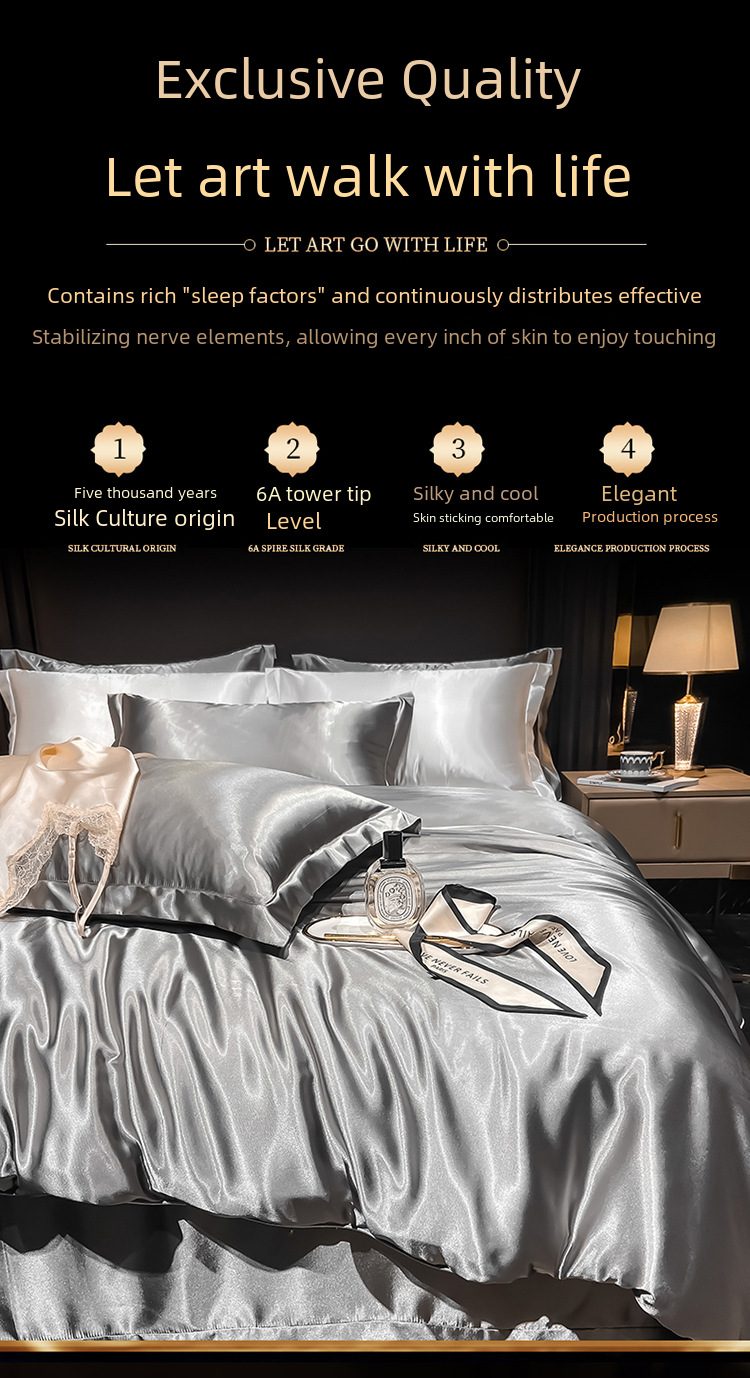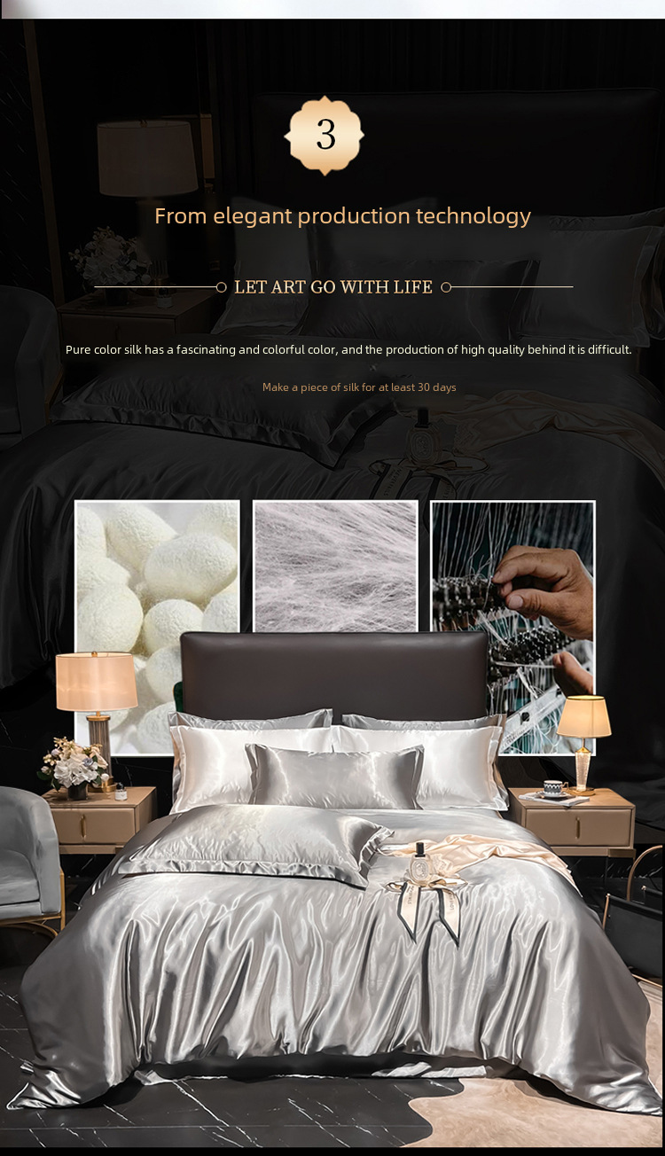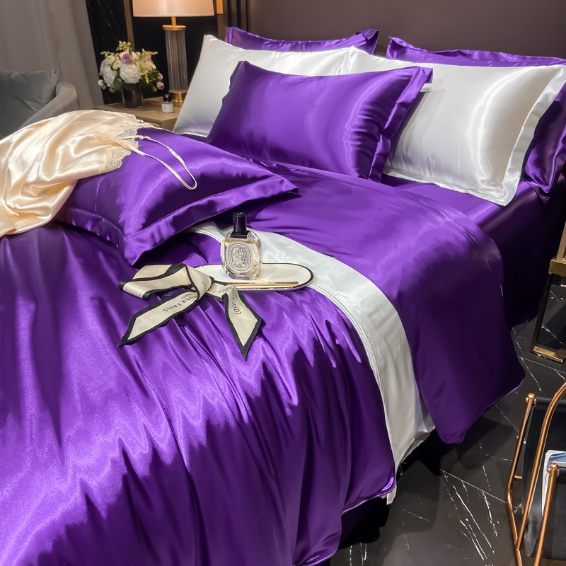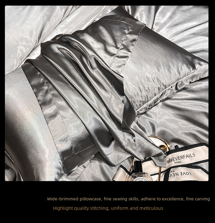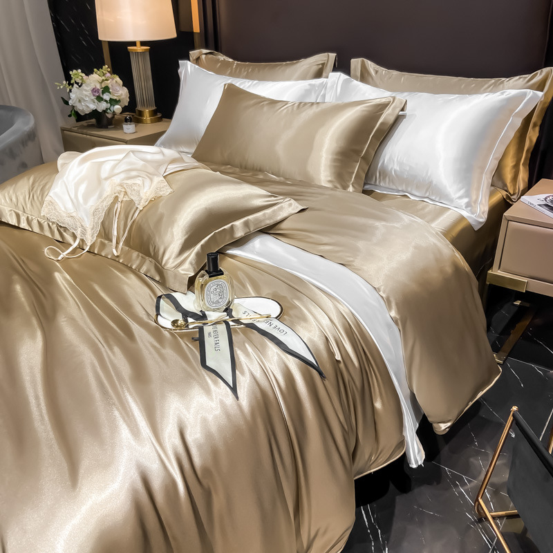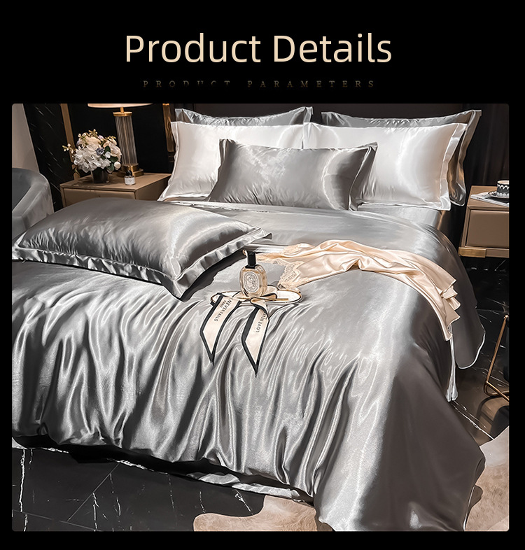 Light luxury bed washed silk four piece ice silk bed sheet quilt cover Tencel satin silky bedding wholesale