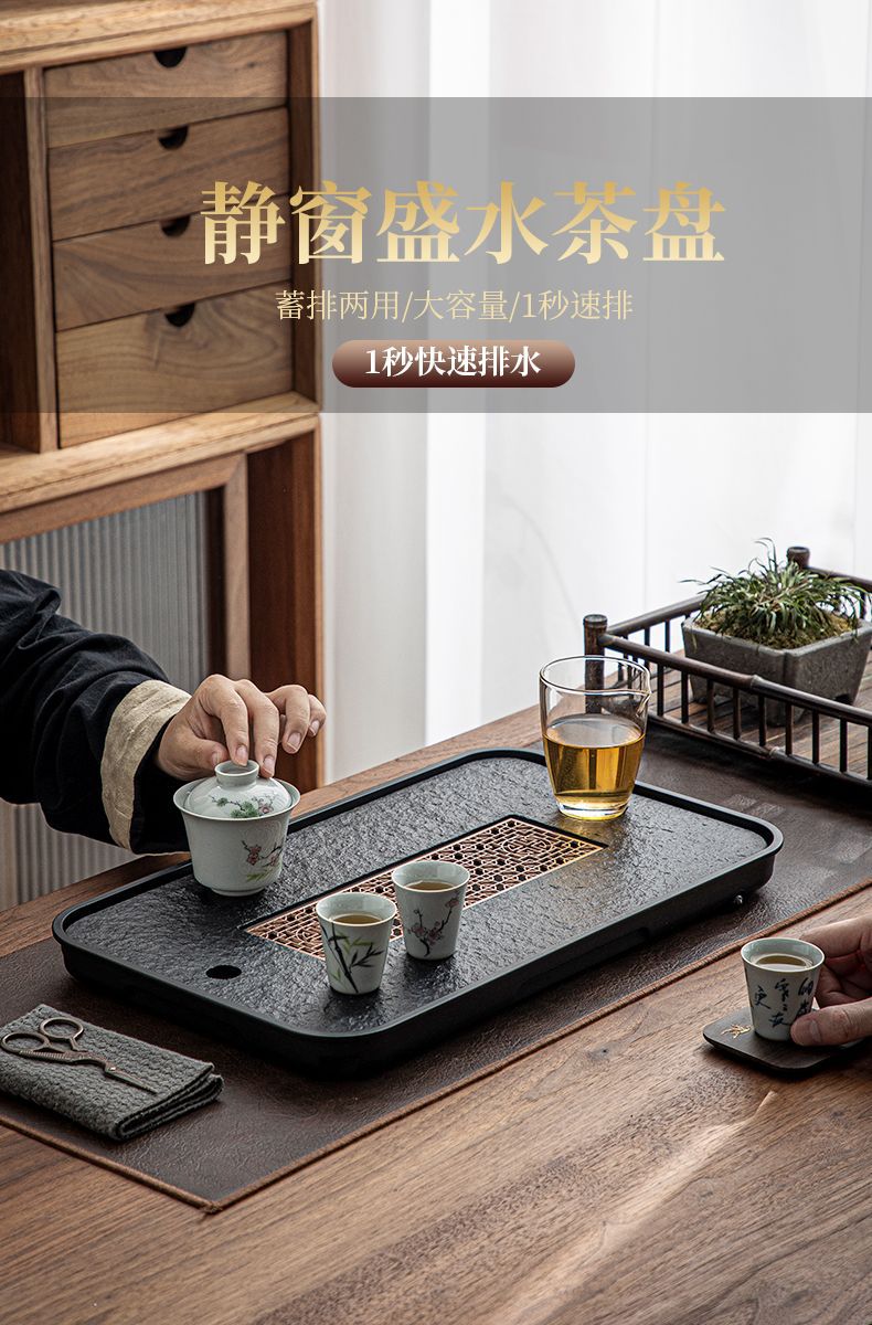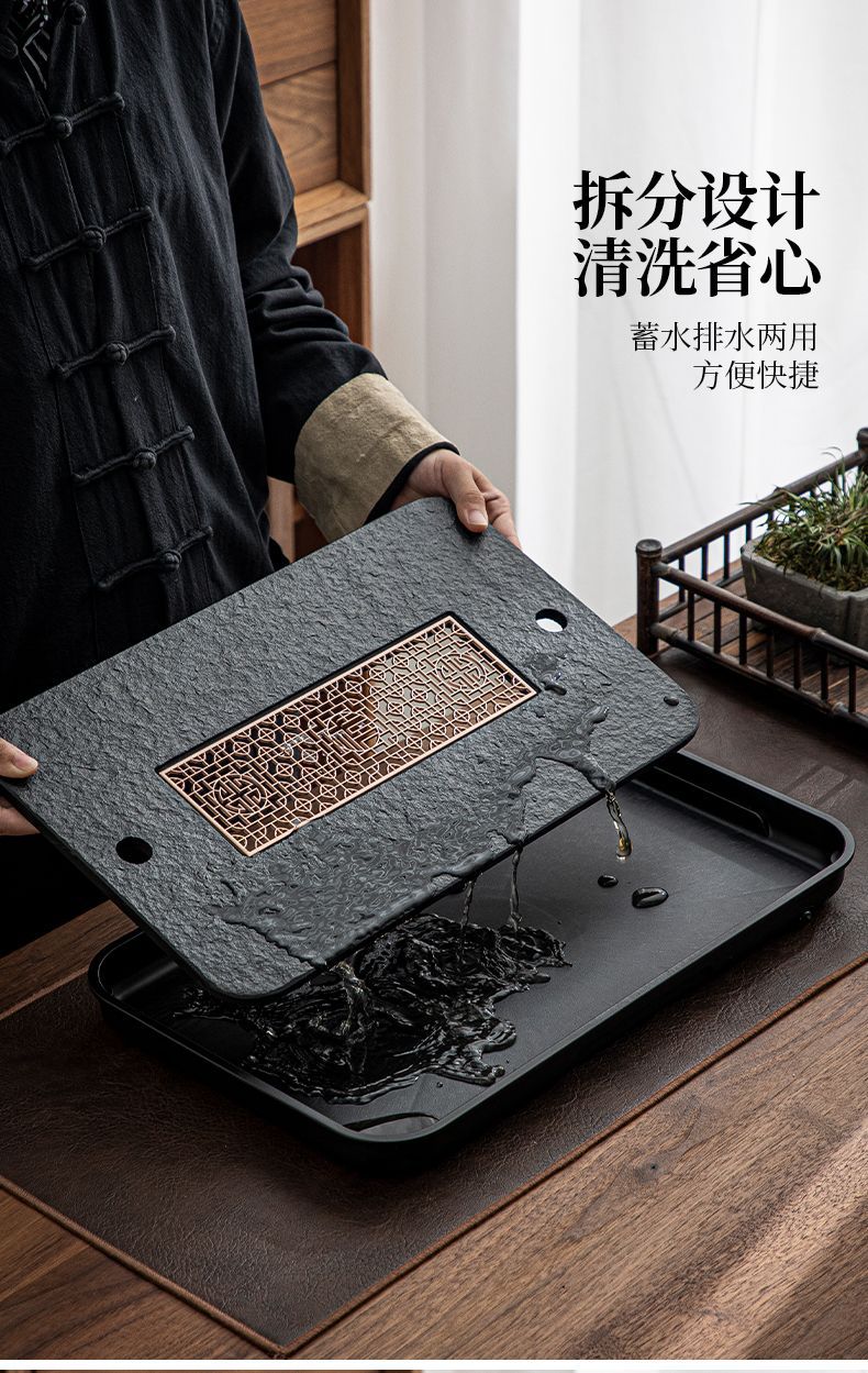 Light luxury household imitation Wujin porcelain stone tea tray tea set small tea table water storage drainage dry bubble table Wujin Stone tea tray