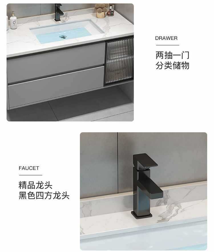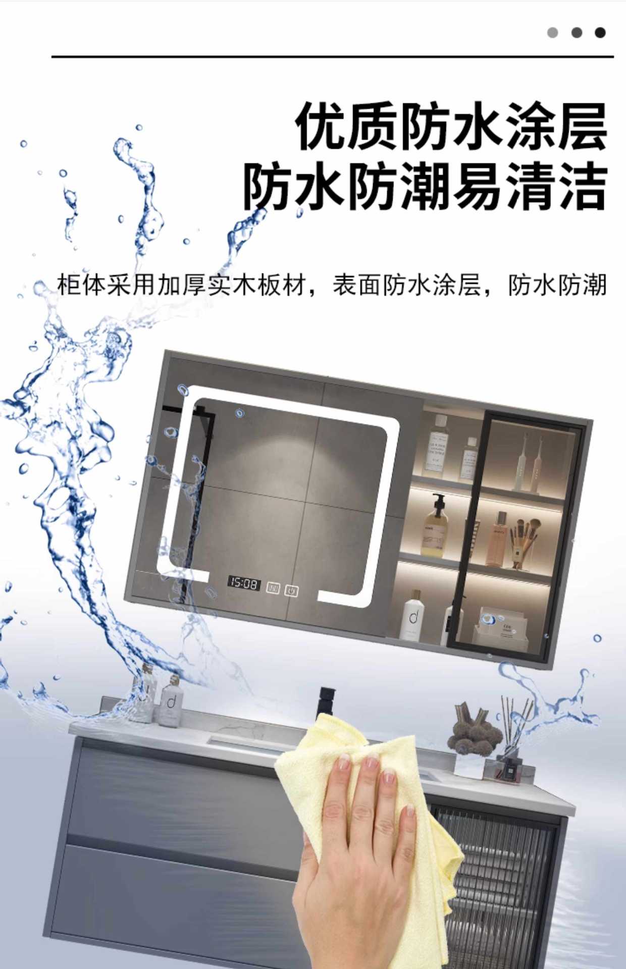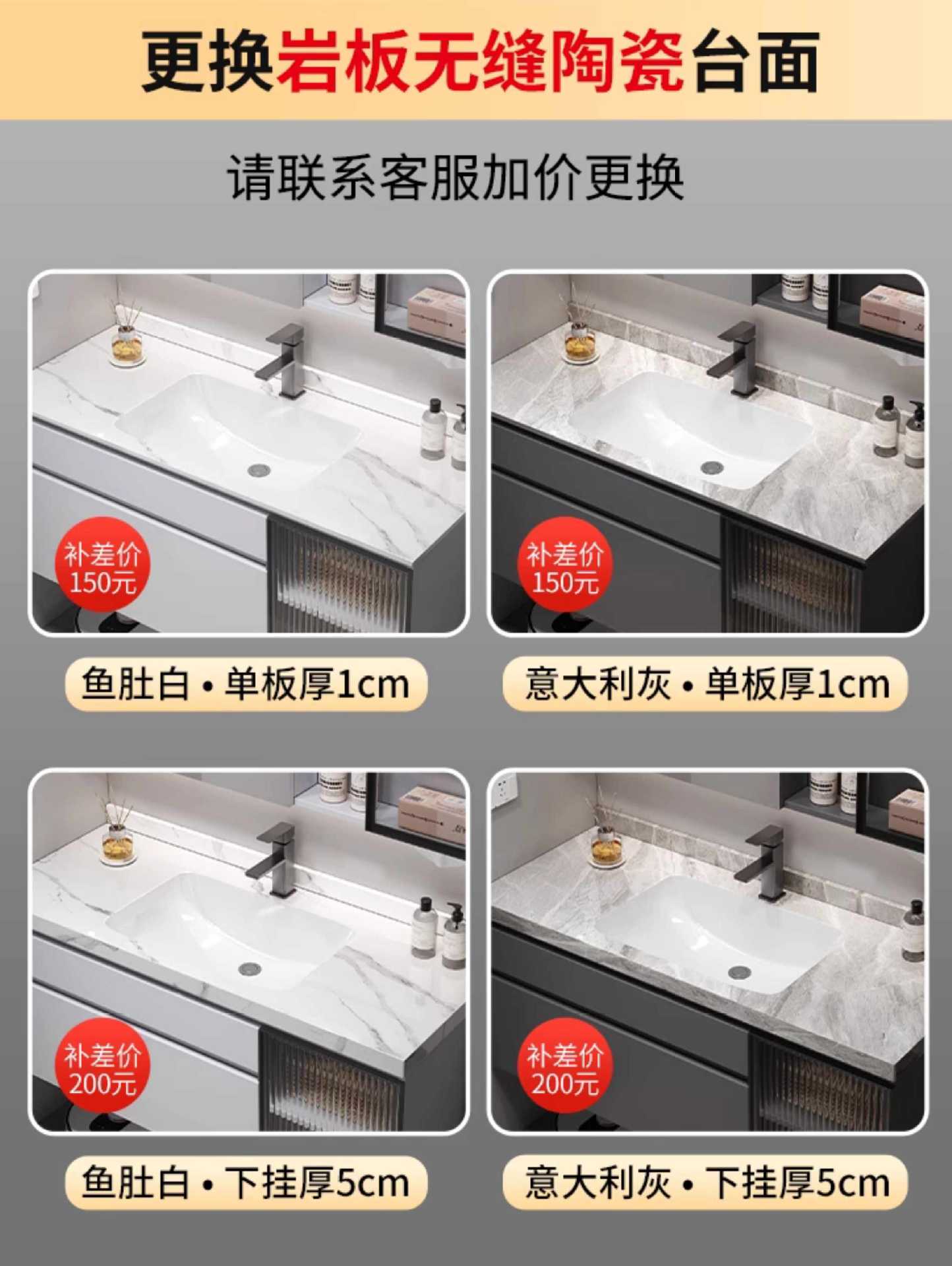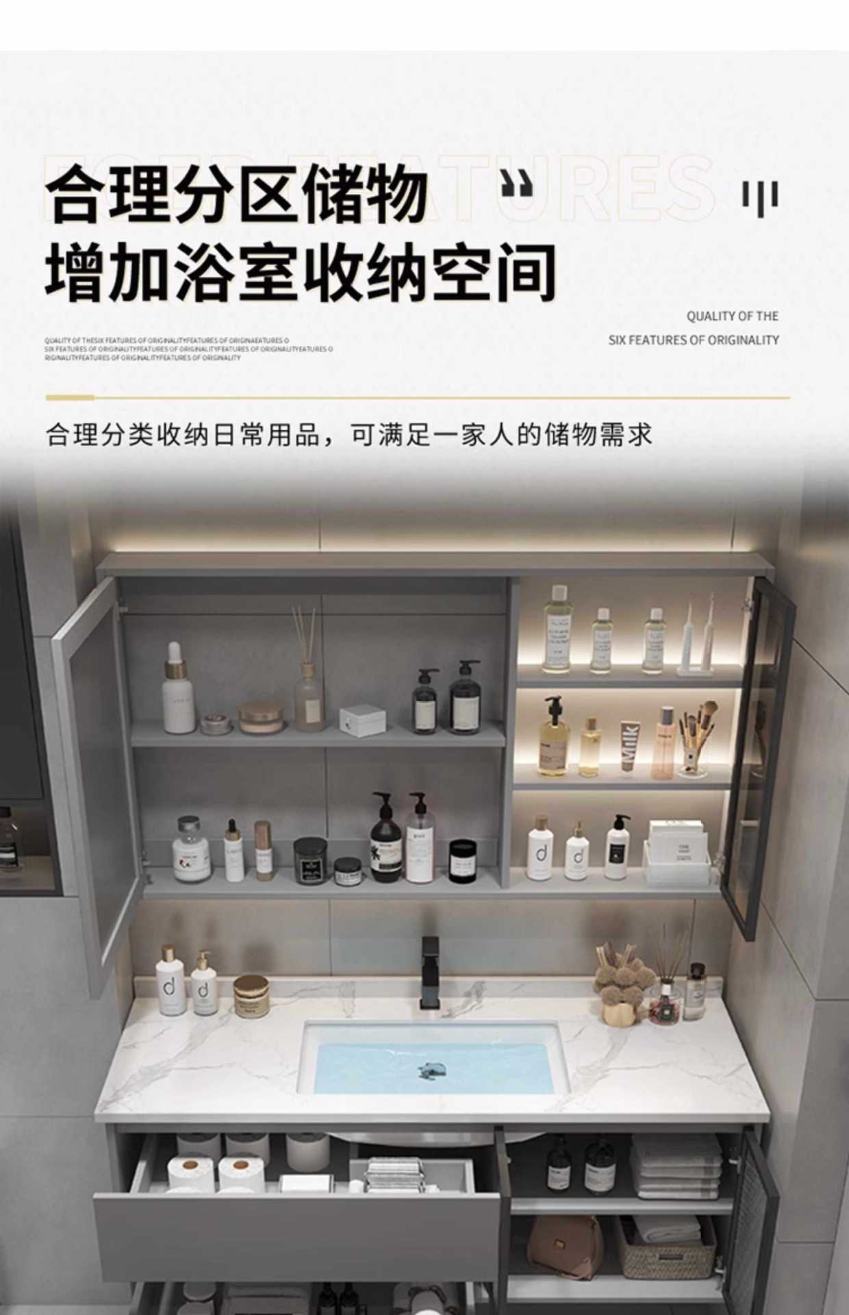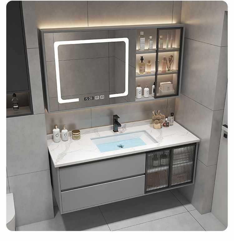 Light luxury solid wood smart bathroom cabinet combination bathroom wash basin rock plate ceramic integrated basin wash table