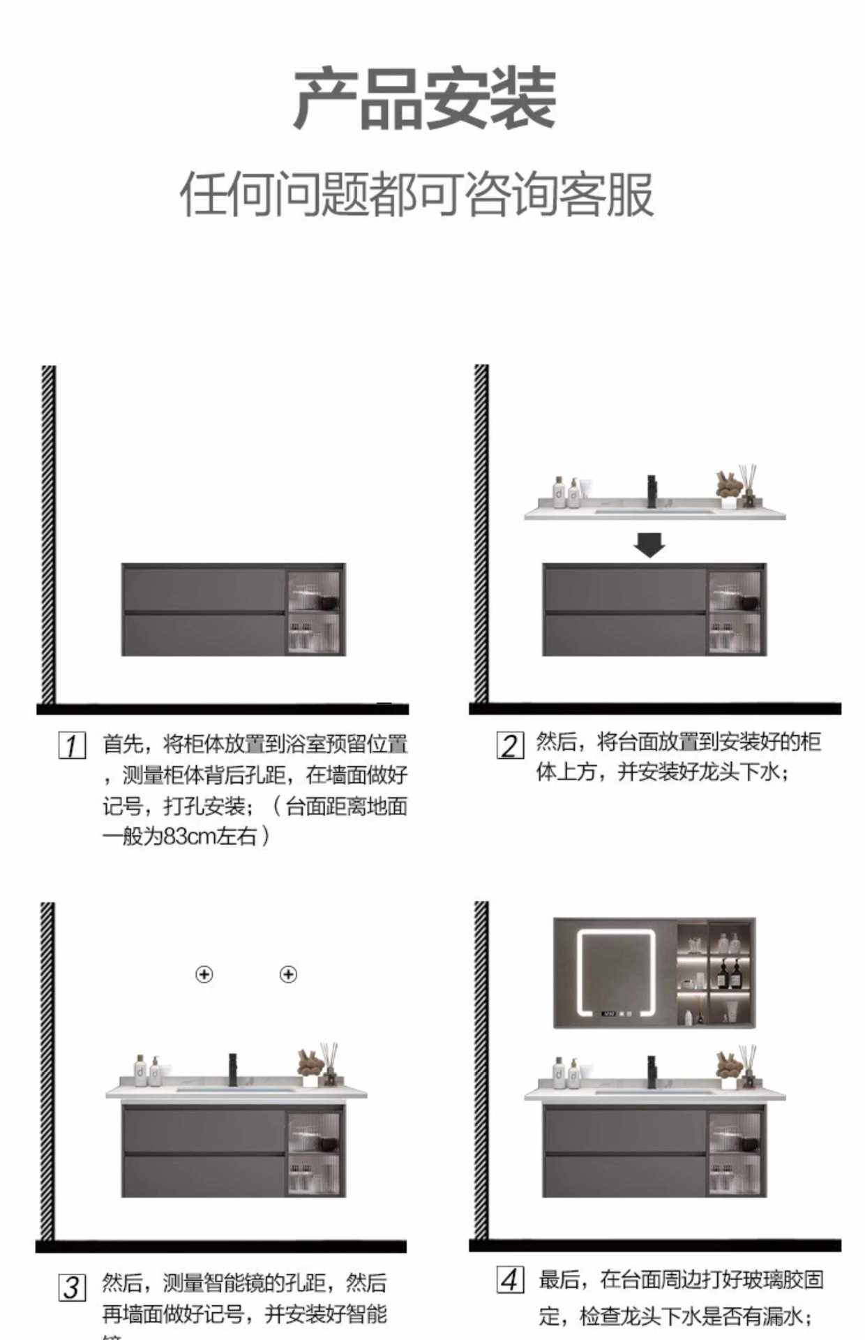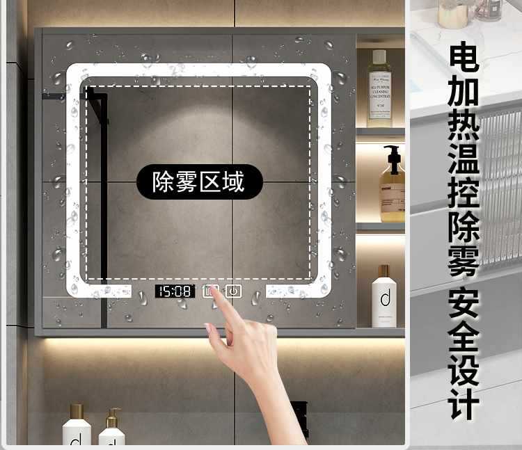 - 80CM silver gray Smart glass door mirror cabinet hanging cabinet