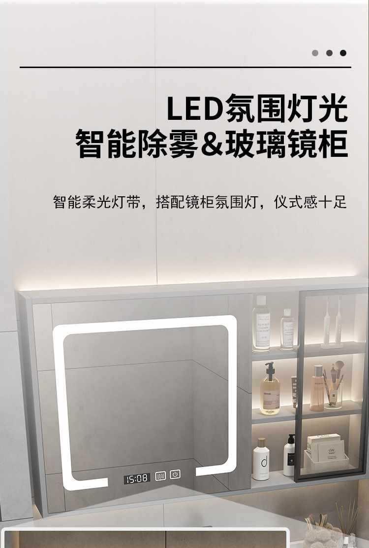 - 80CM pure white smart glass door mirror cabinet hanging cabinet