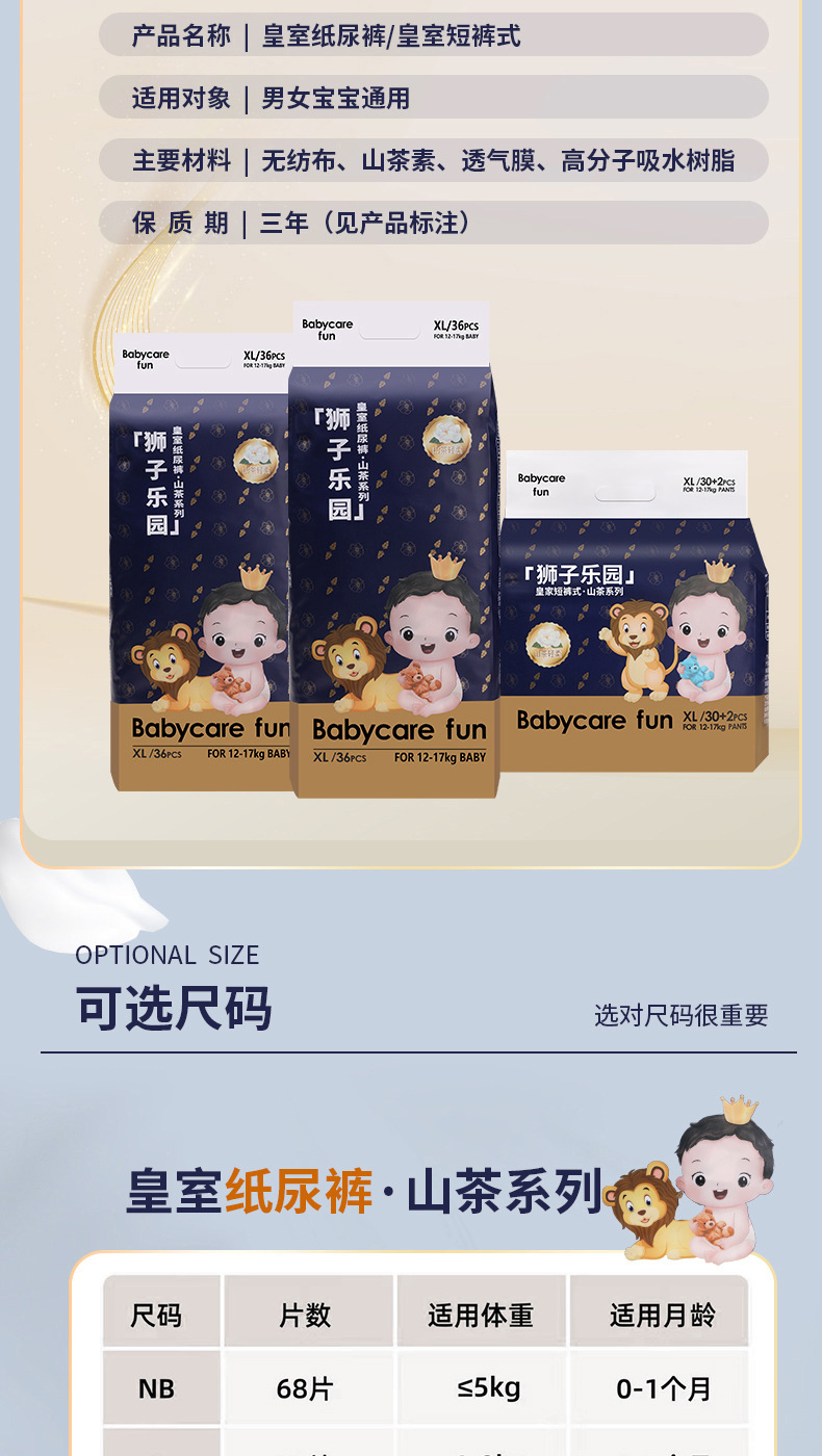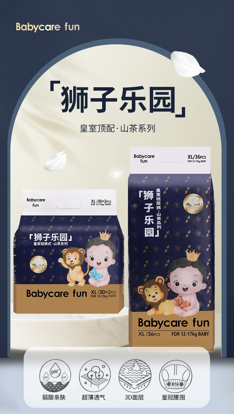 Lion paradise diapers baby Camellia dry breathable male baby diaper one piece pull up pants manufacturer