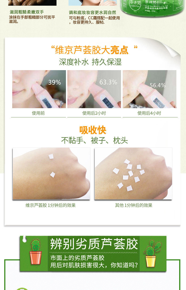 Lishifan aloe moisturizing gel moisturizing refreshing moisturizing tender and smooth facial care aloe vera gel wholesale