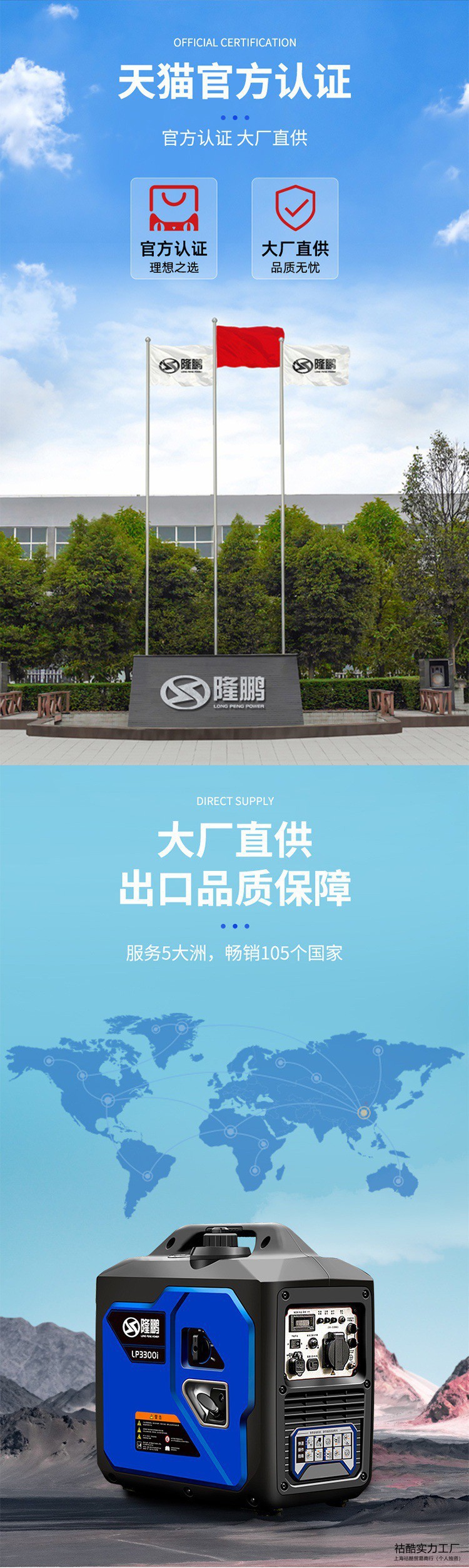 Longpeng 3kw silent 220v gasoline generator frequency conversion portable small electric starter home 2 kW
