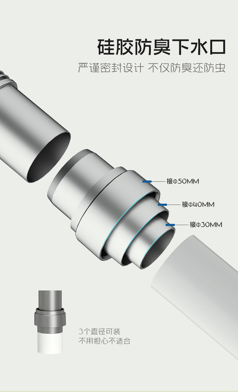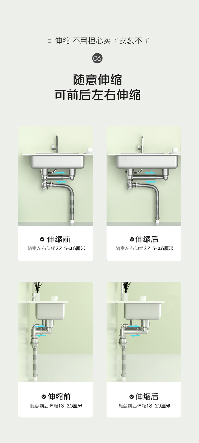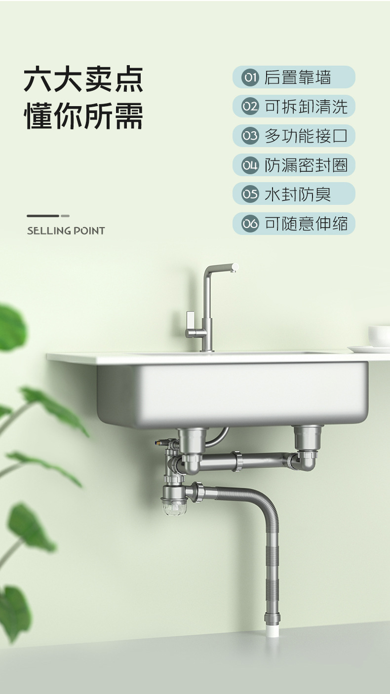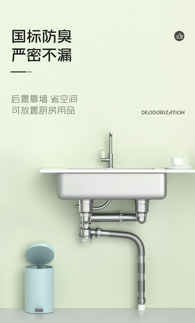 Longshunte Kitchen 304 Stainless Steel Deodorant Wash Basin Drawer Rear Retractable Kitchen Drawer Pipe