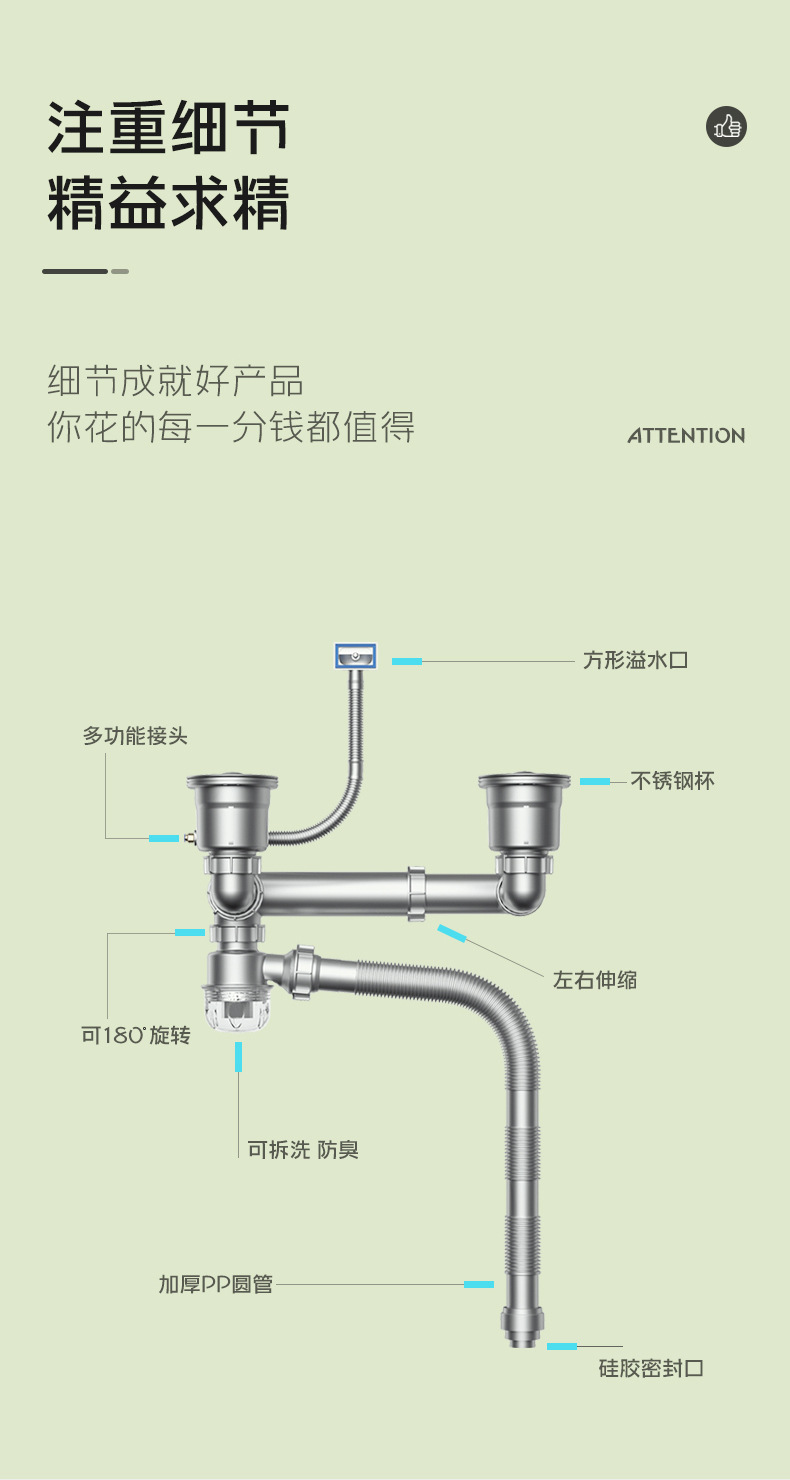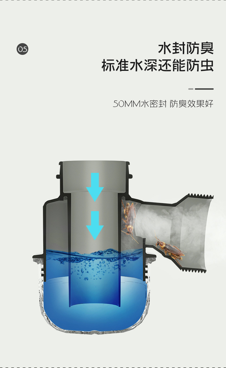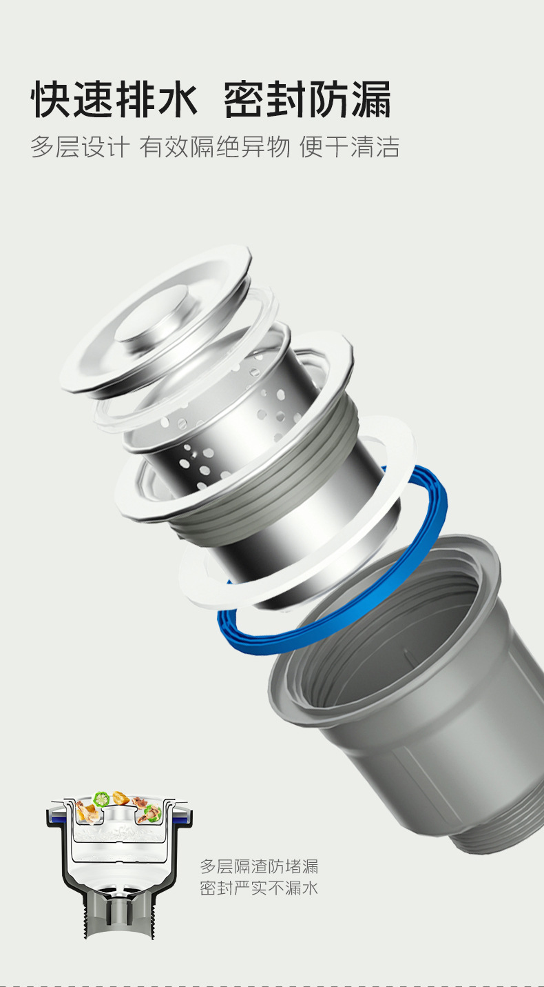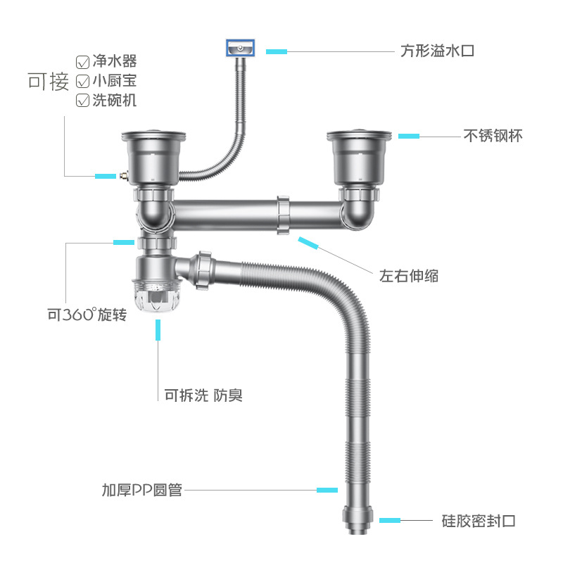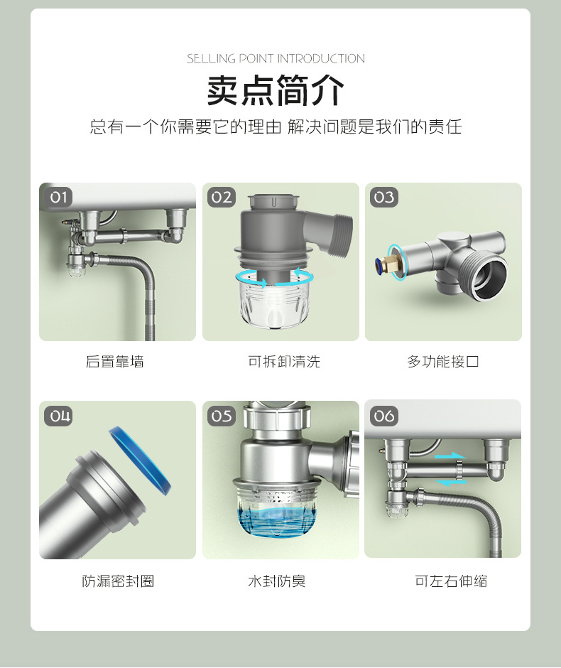 Longshunte Kitchen 304 Stainless Steel Deodorant Wash Basin Drawer Rear Retractable Kitchen Drawer Pipe