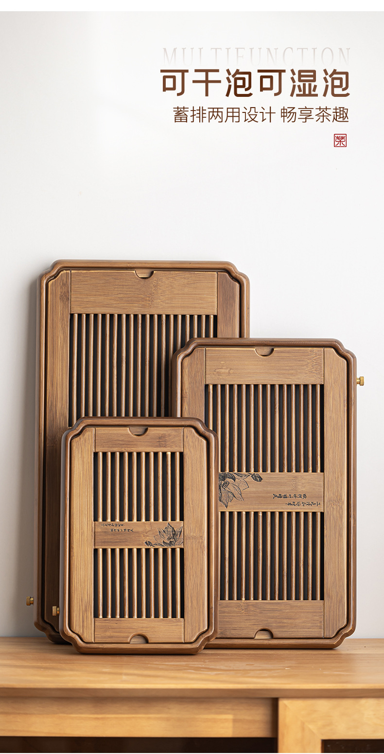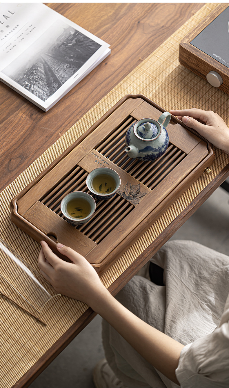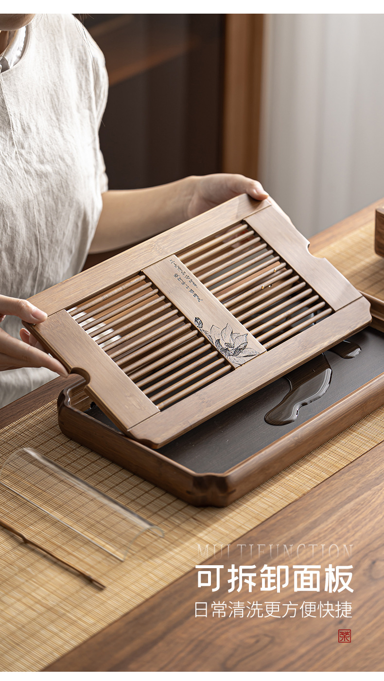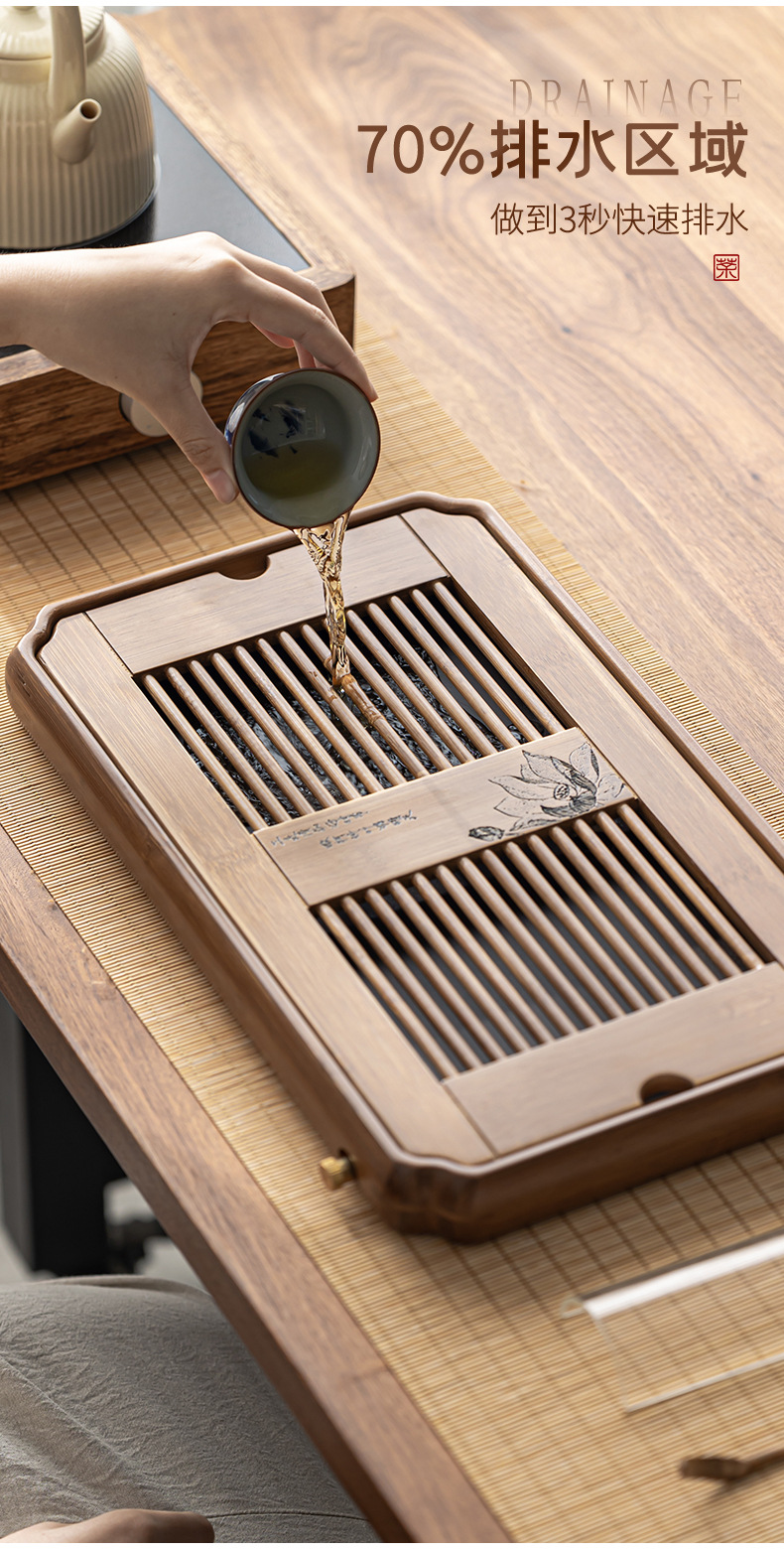 Lotus walnut bamboo tea tray water storage and drainage dual-purpose tea table kung fu tea set bamboo tea sea factory direct sales