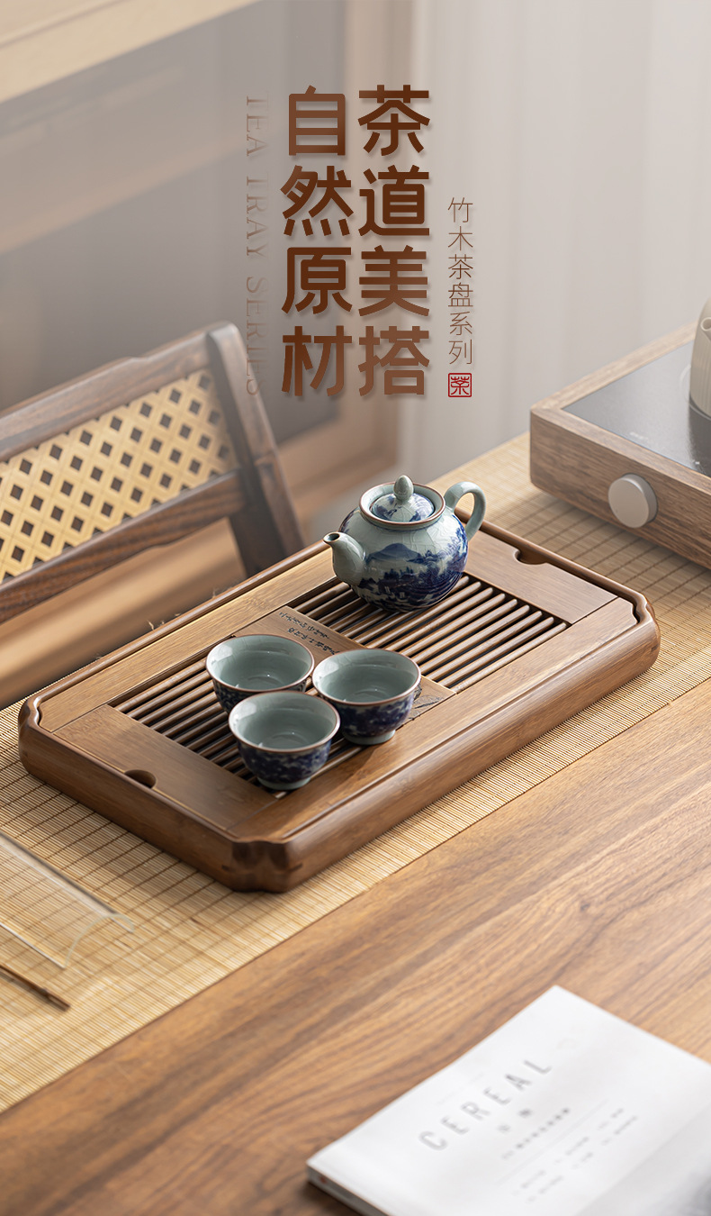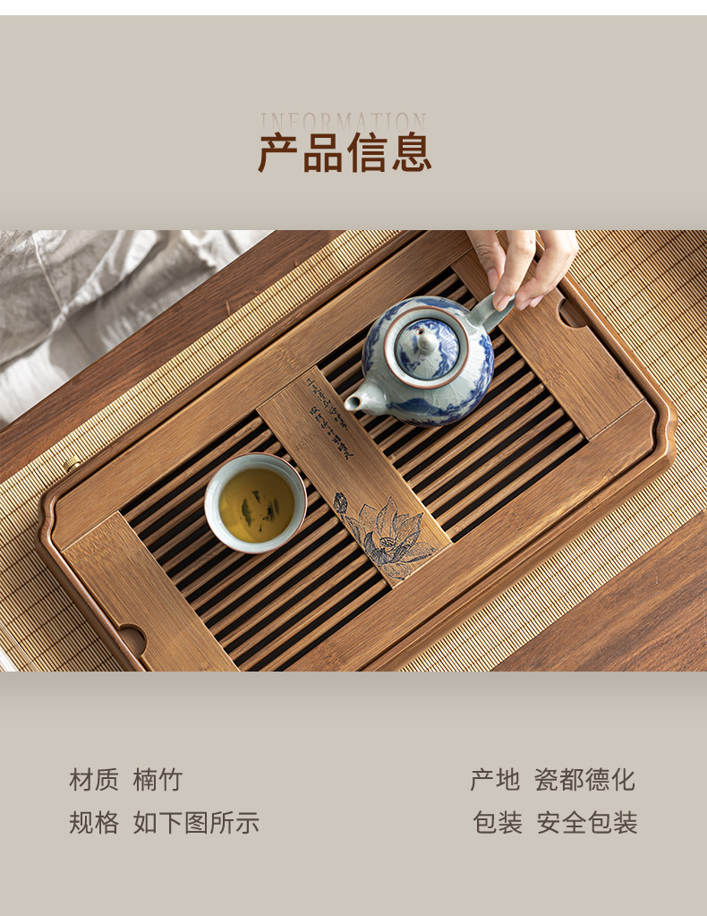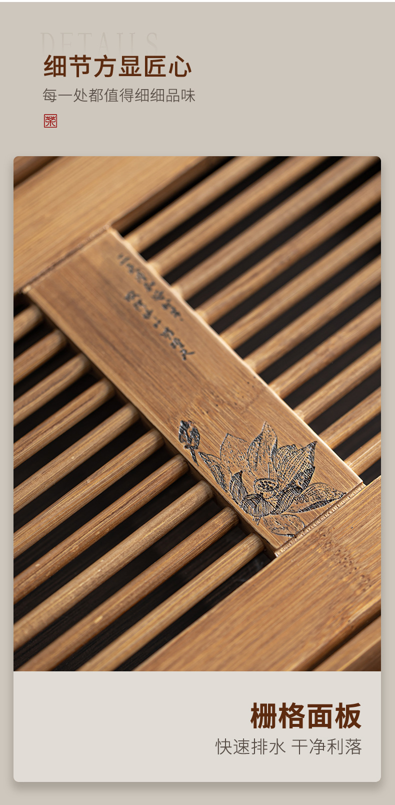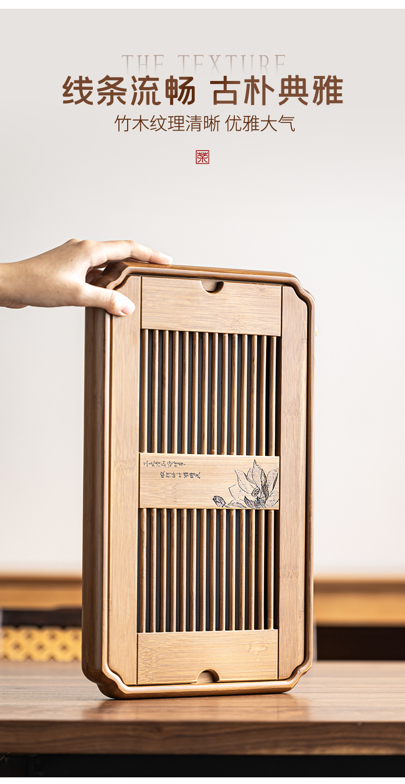 Lotus walnut bamboo tea tray water storage and drainage dual-purpose tea table kung fu tea set bamboo tea sea factory direct sales