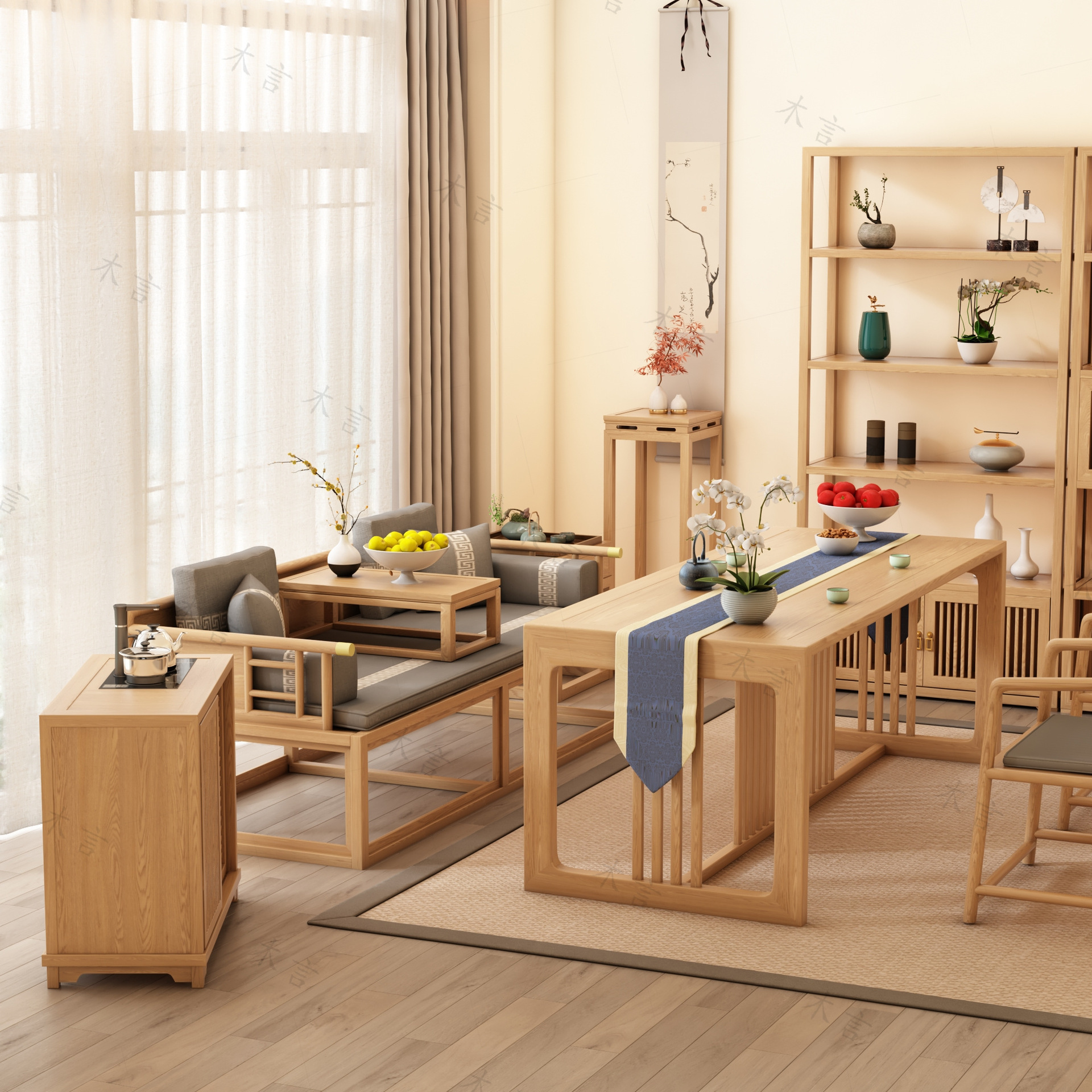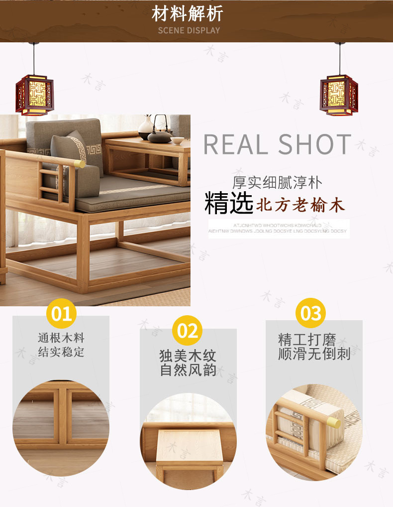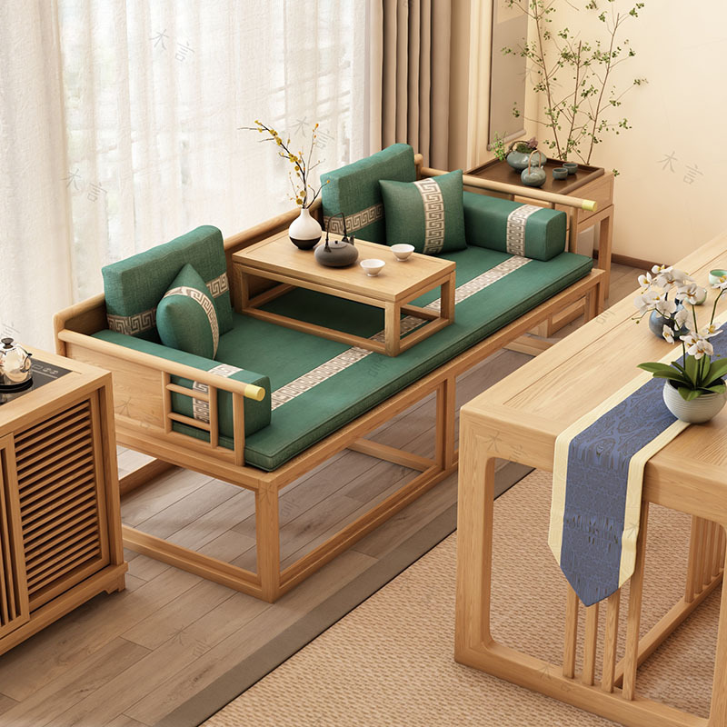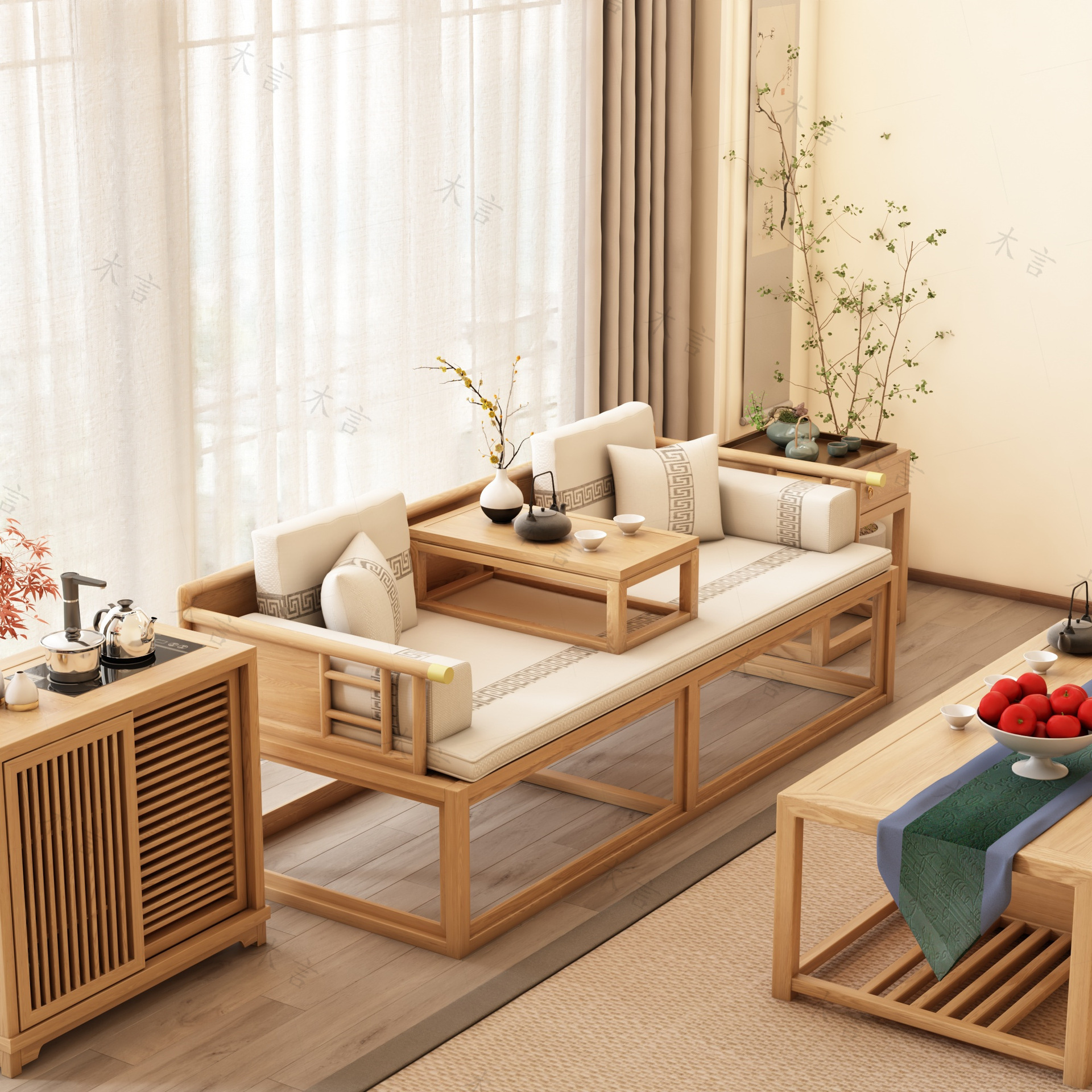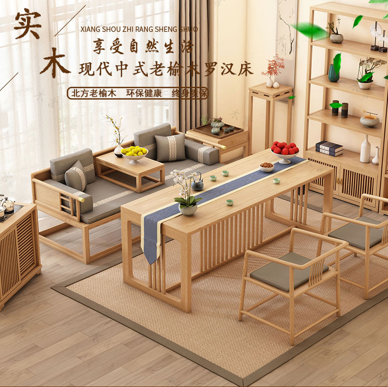Luohan bed solid wood sliding dual use bed Old Elm new Chinese sofa small apartment living room retractable log chaise bed