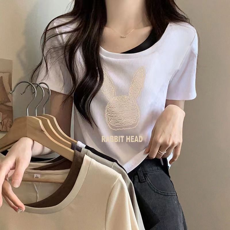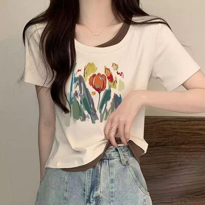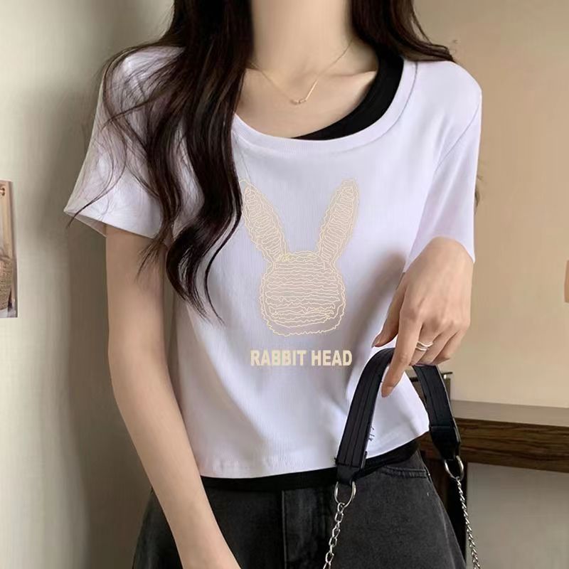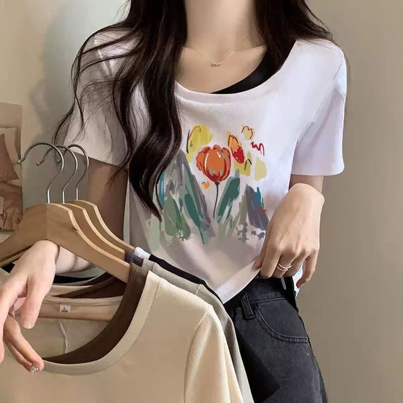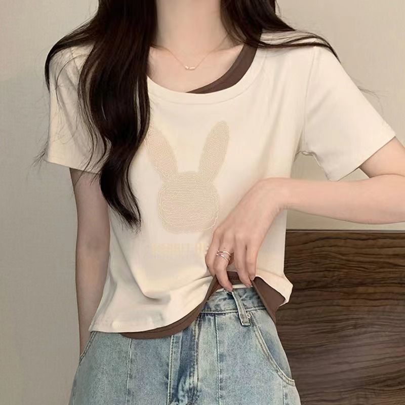 M5.18 1 Chubby Girls Summer Plus Size Pure Desire Design Sense Niche Thin Fake Two piece Women s T shirt Short sleeved Top