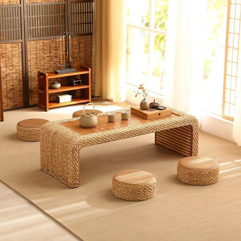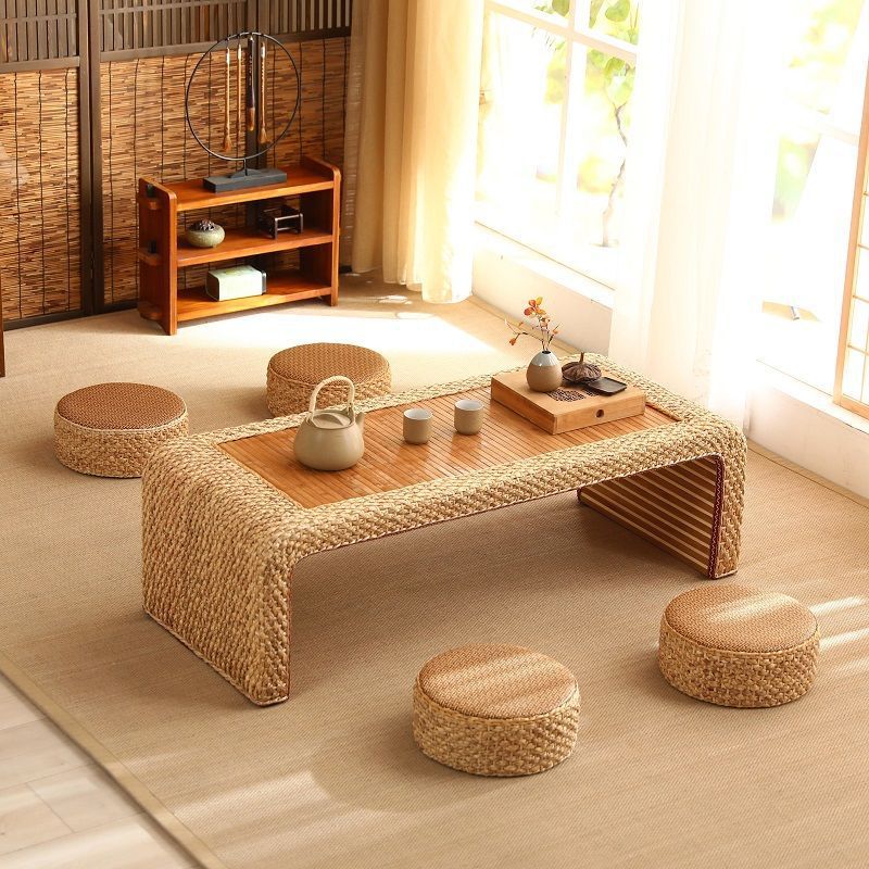 MIN Rattan Coffee Table Tatami Table Balcony Table Tea Table Bay Window Japanese Low Table Kang Table Household Floor Combination Table
