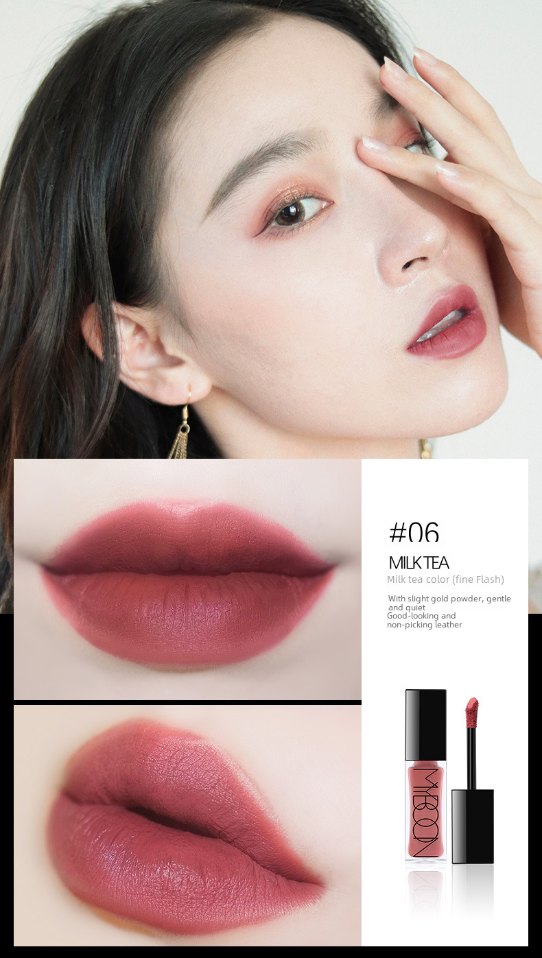 MYBOON Maiben Matte Lip Glaze Female Student Air Mist Lip Dye Honey Color Lipstick Makeup Lip Cream Niche