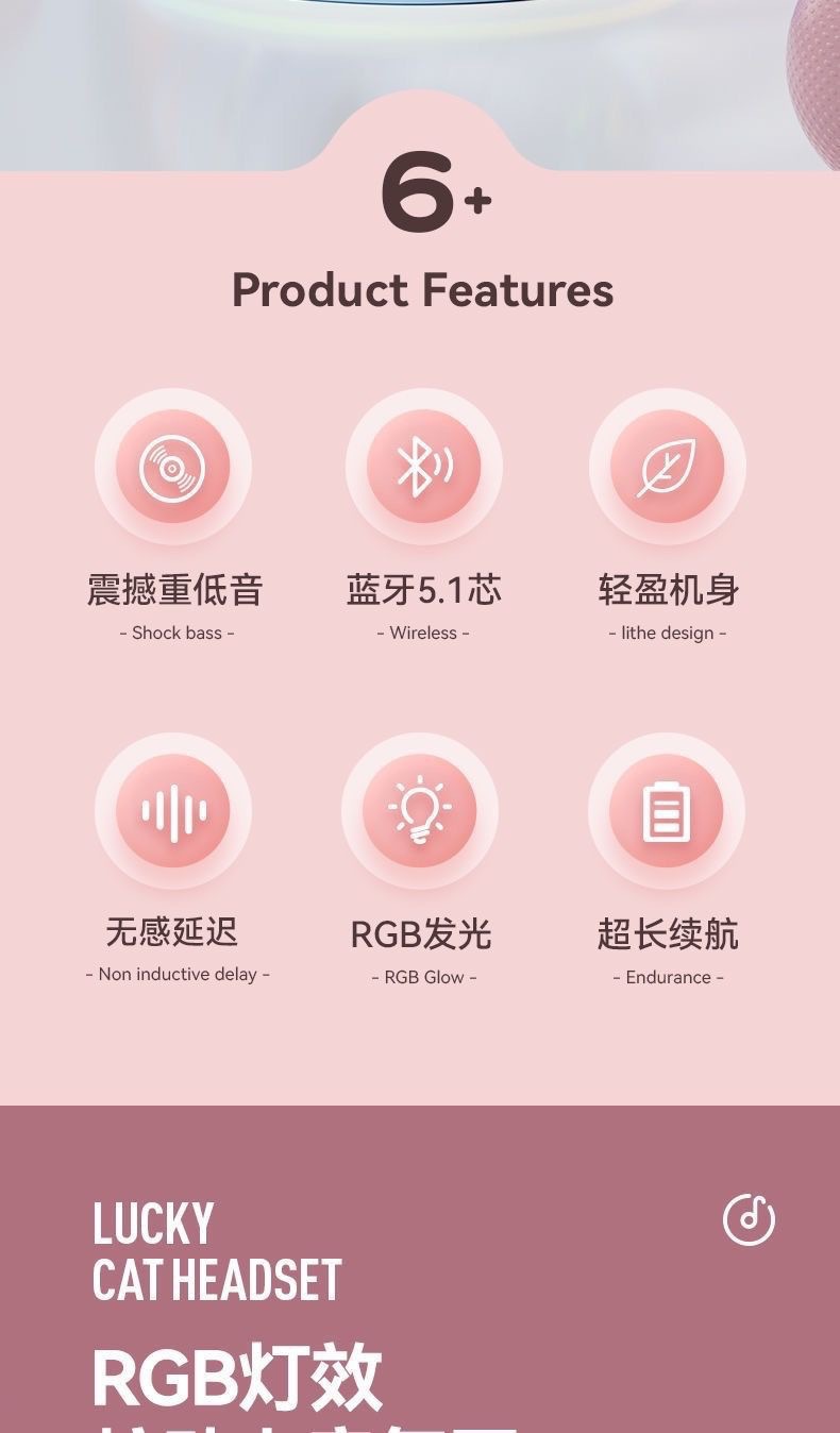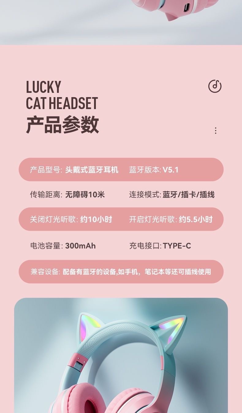 MZ 618BT cross border headset bluetooth headset BT035C gradient cat ear luminous e sports gaming headset