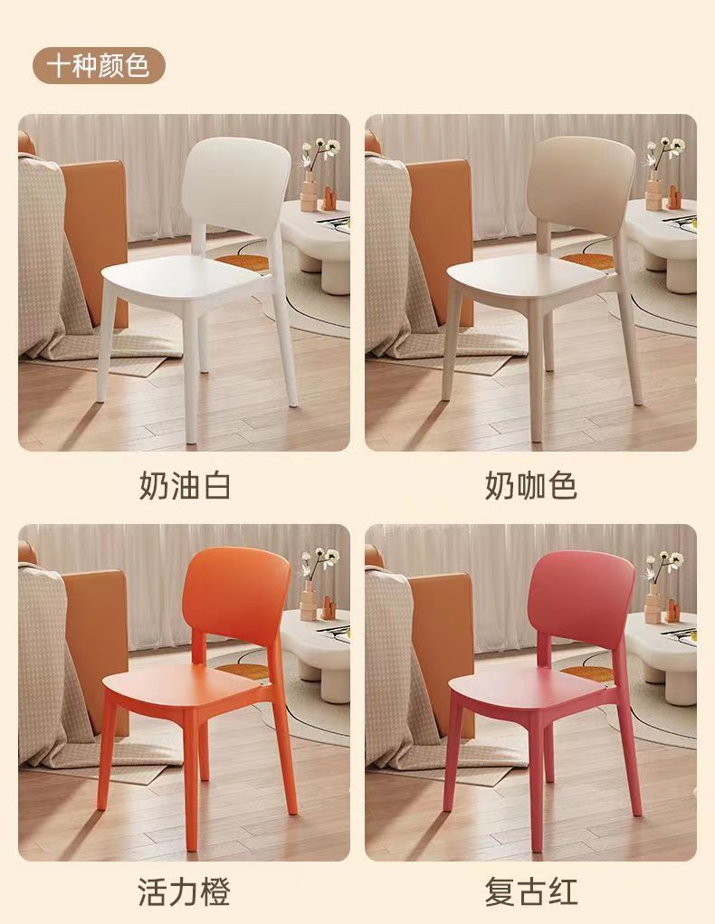 Macaron Color Plastic Dining Chair Modern Simple Dining Room Chair with Backrest Household Thickened Plastic