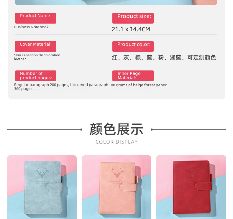 Magnetic buckle inner page thickened A5 high color value ins Wind deer head business meeting insert pen schedule notepad wholesale