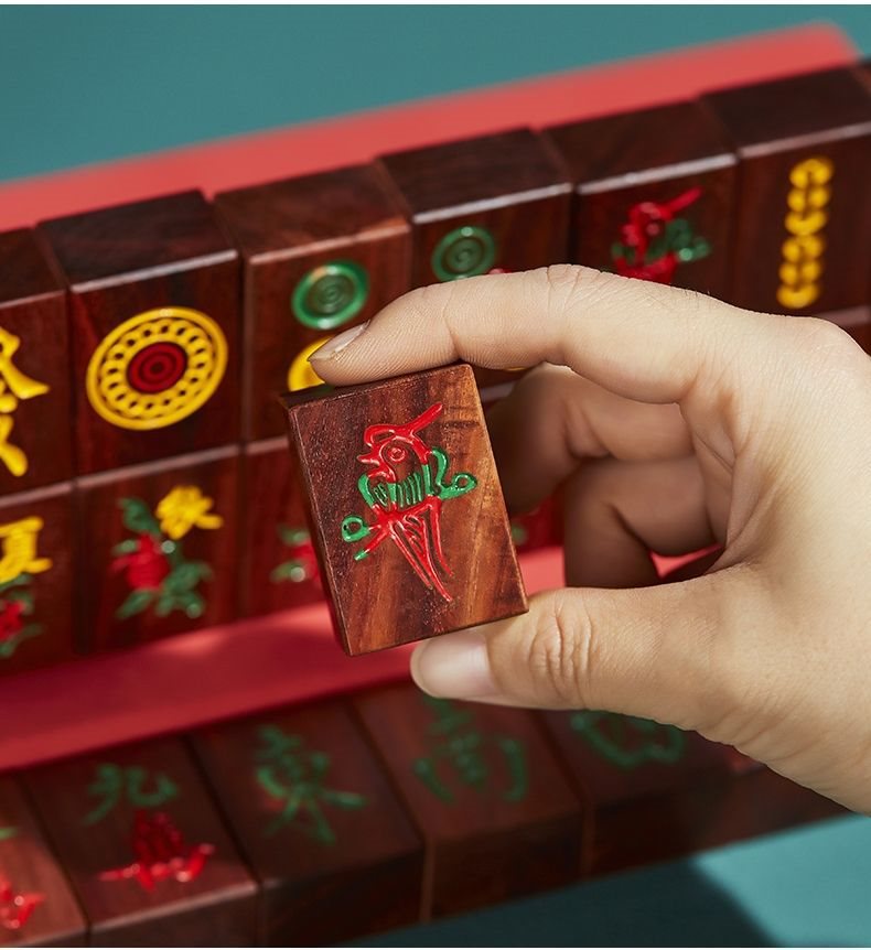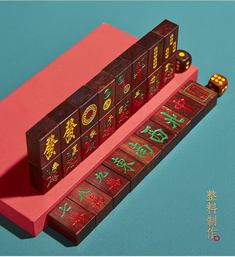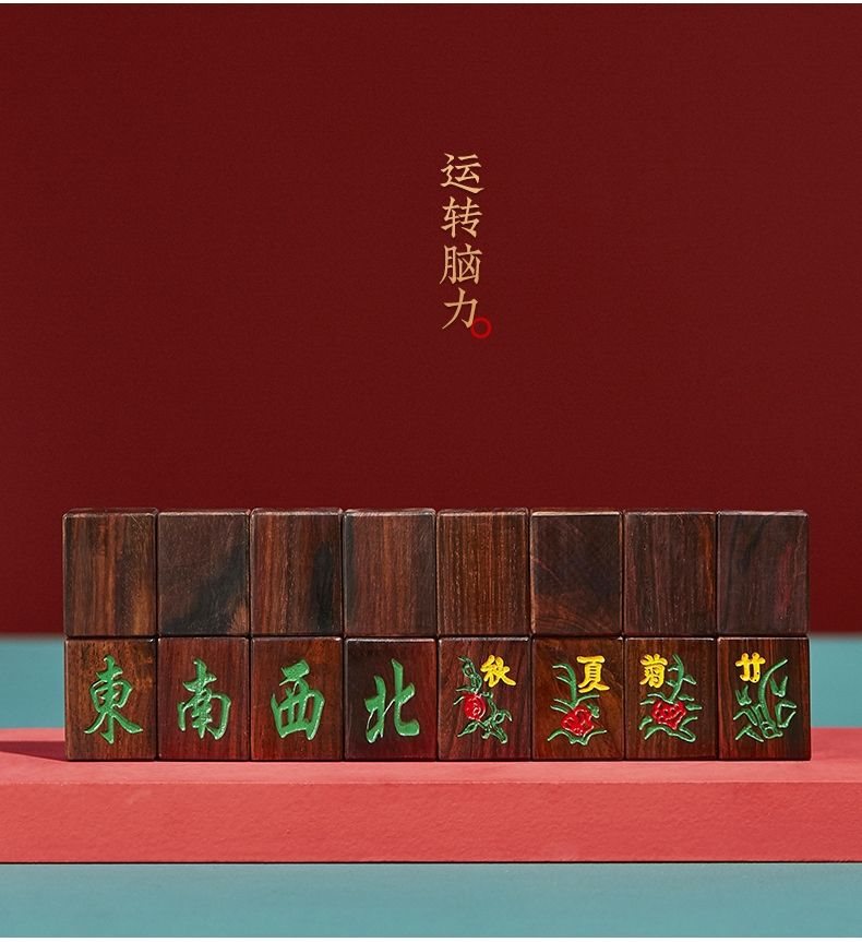 Mahogany Laos Red Sour Branch Mahjong Brand Solid Wood Carving Household Business Craft Gift Preservation Collection