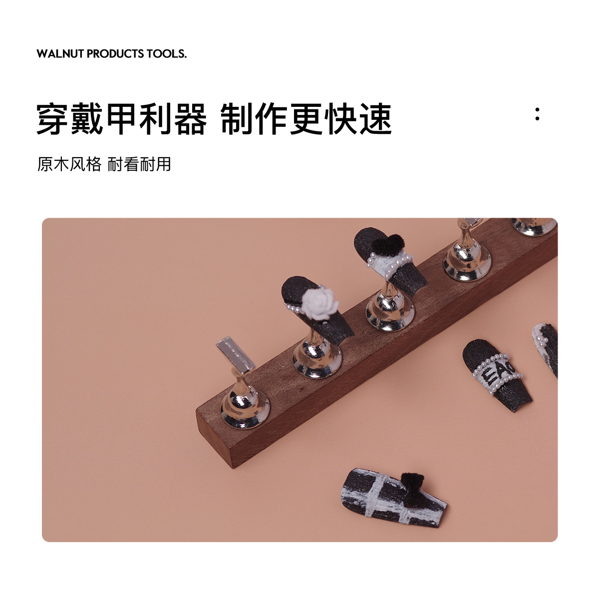Manicure tools Japanese retro chess practice suit walnut base metal nail holder bottom with strong magnetic