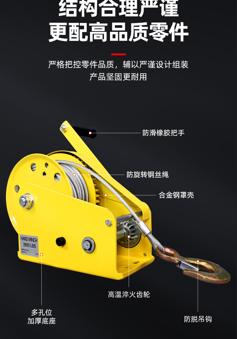 Manual winch two way self locking hand winch traction hoist small winch lifting crane household crane