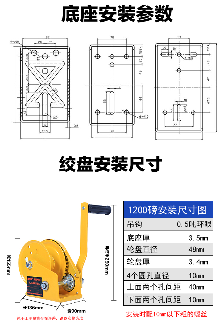 - Shaft sleeve 1200 pounds 10 meters wire rope hook (hanging 150kg)