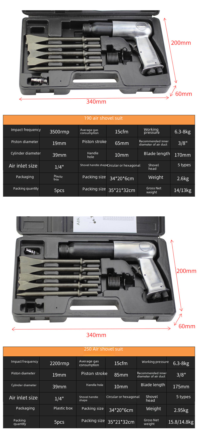 Manufacturers supply air shovel pneumatic blade air hammer air hammer tool brake pad rust remover gun head chisel Air pick Air pick
