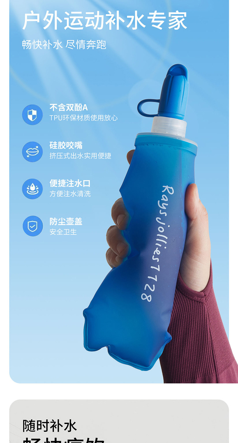 Marathon long-distance running sports soft water bottle foldable off-road running water bag professional close-fitting portable water Cup 500ML