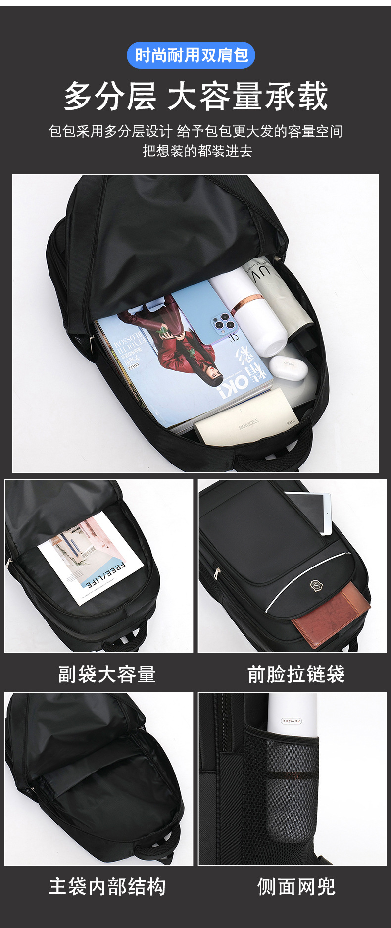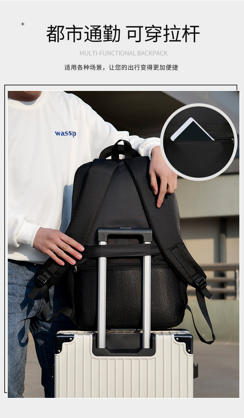 Men's commuter backpack fashionable durable backpack junior high school student schoolbag printable logo business computer bag