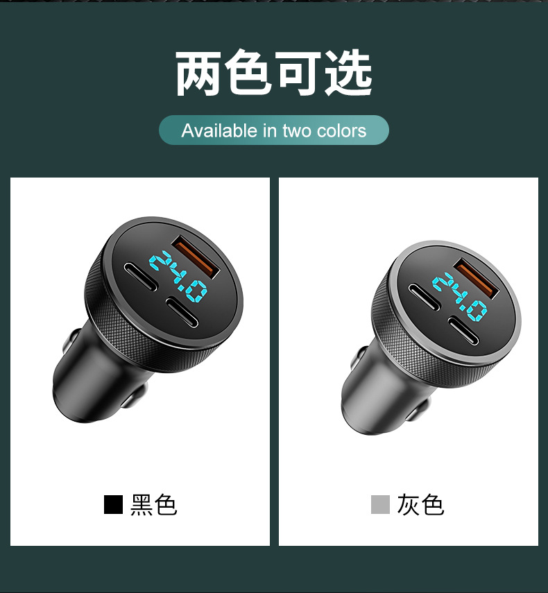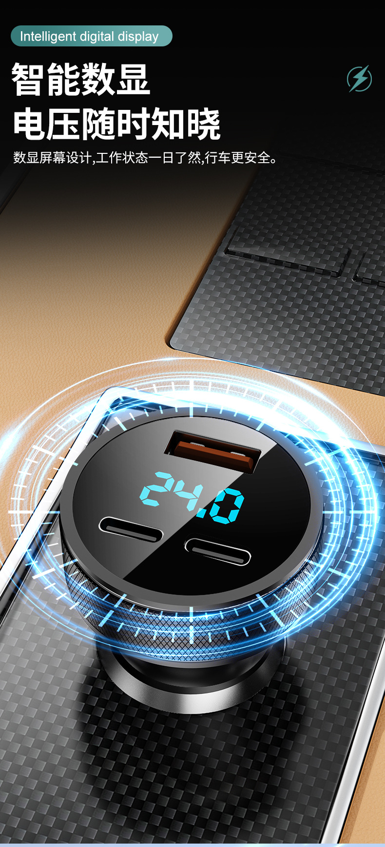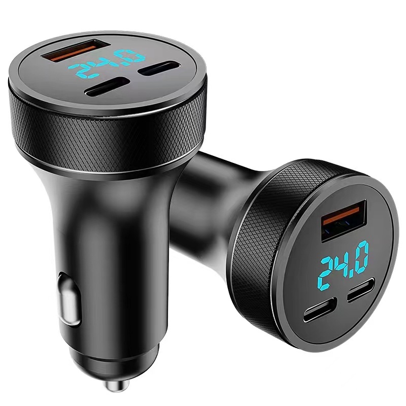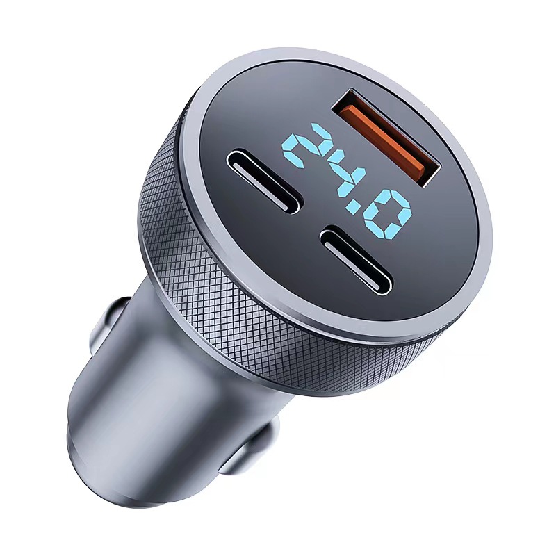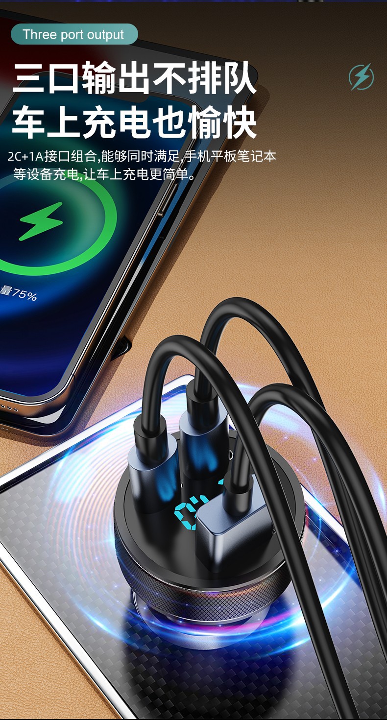 Metal digital display car charger 2C 1A is suitable for Huawei Apple flash charger super fast charger one to three car charger