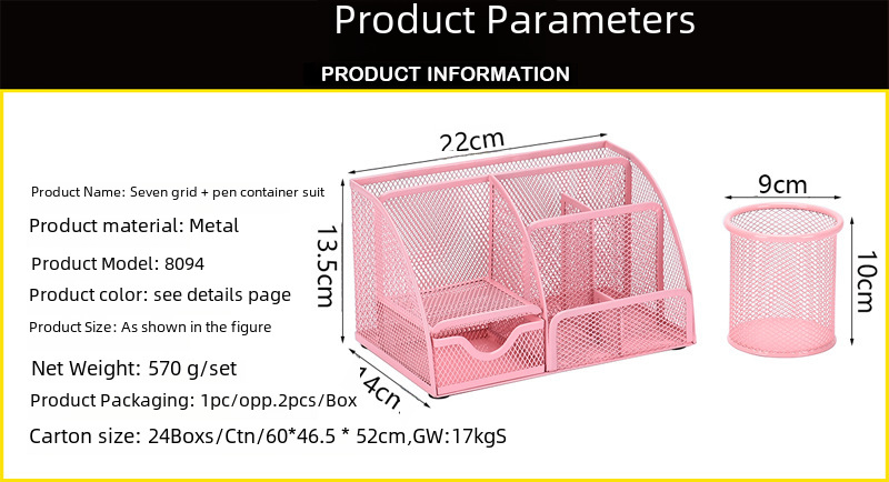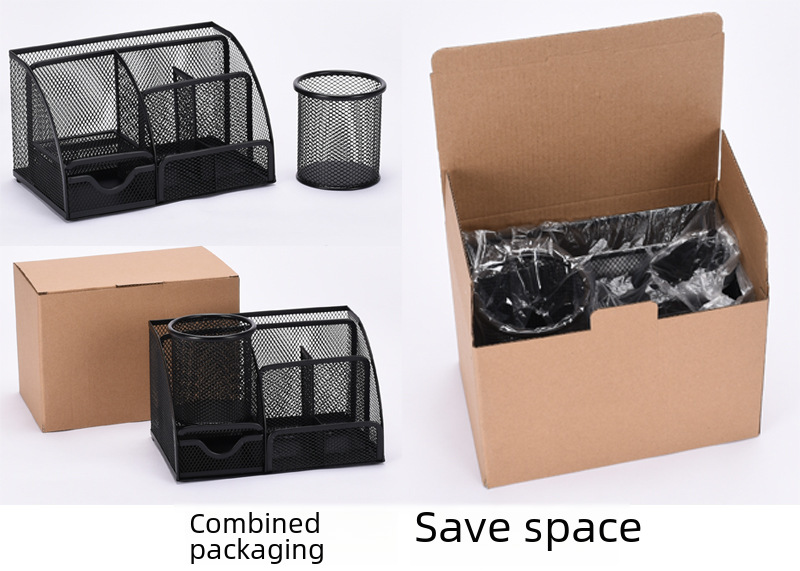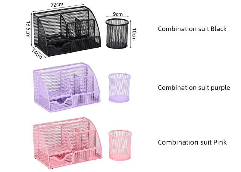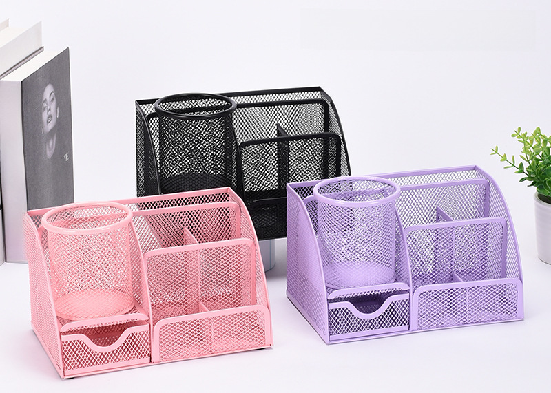 Metal multifunctional pen holder set desktop storage office stationery cosmetic box iron mesh combination organizing rack wholesale