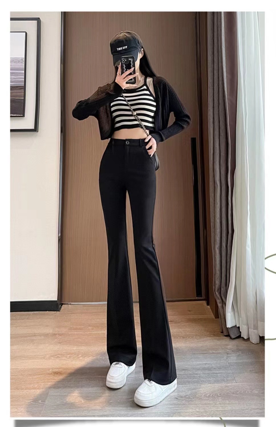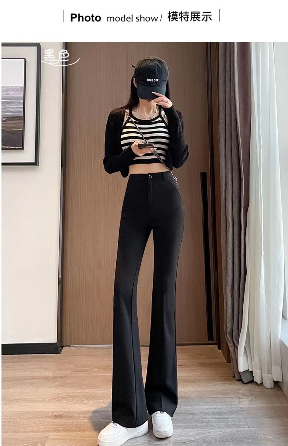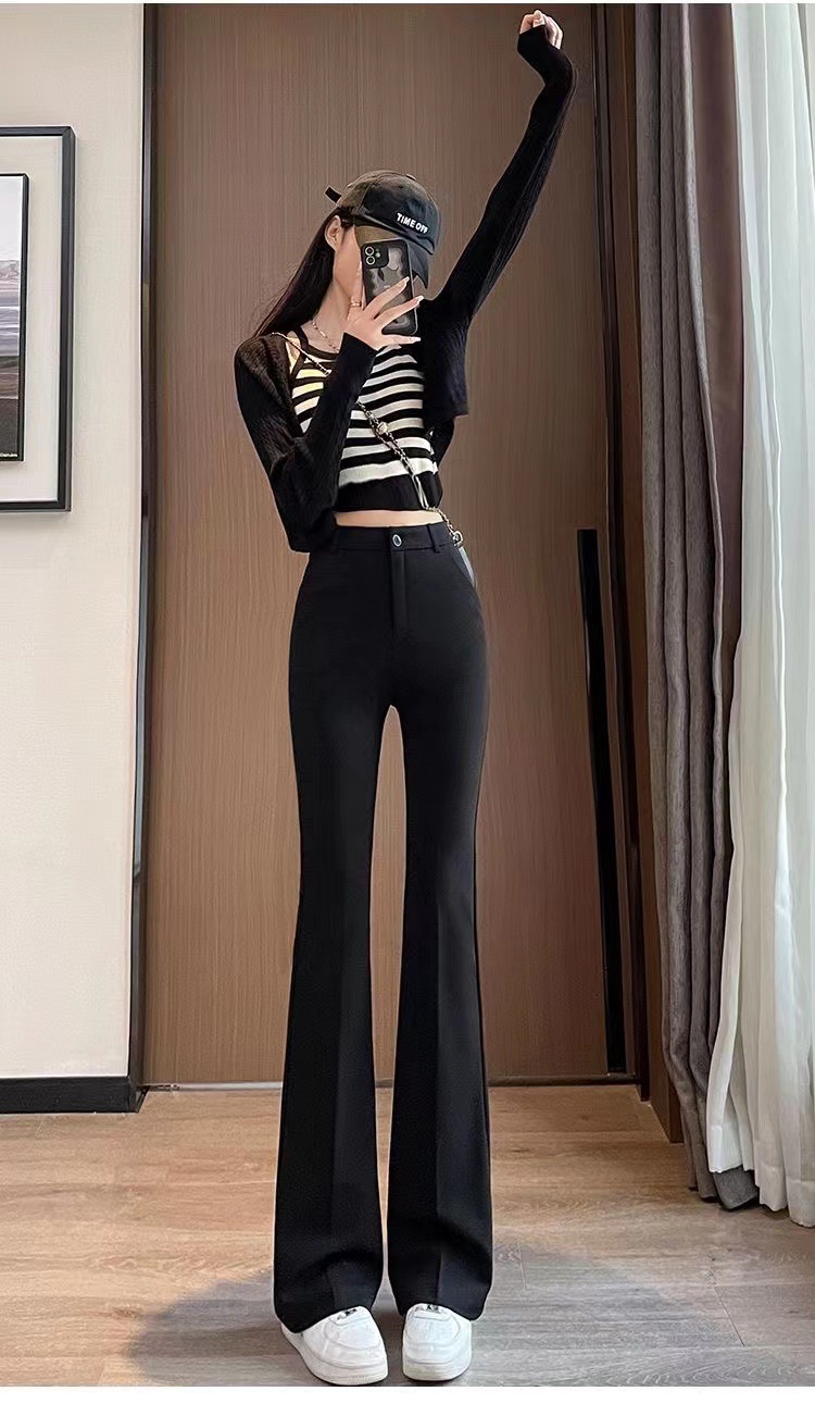 Micro flared pants for women 2023 Spring and Autumn New High waist slim fit slimming draping black stretch casual suit trousers